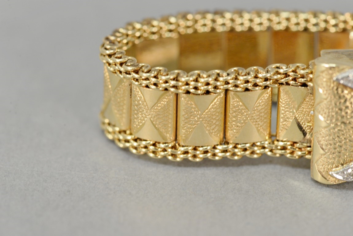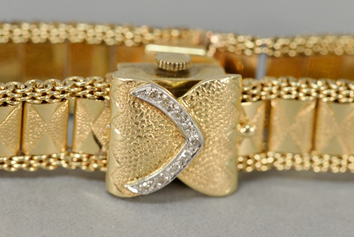 14K gold wristwatch / bracelet with altair movement. 34.7 grams net weight