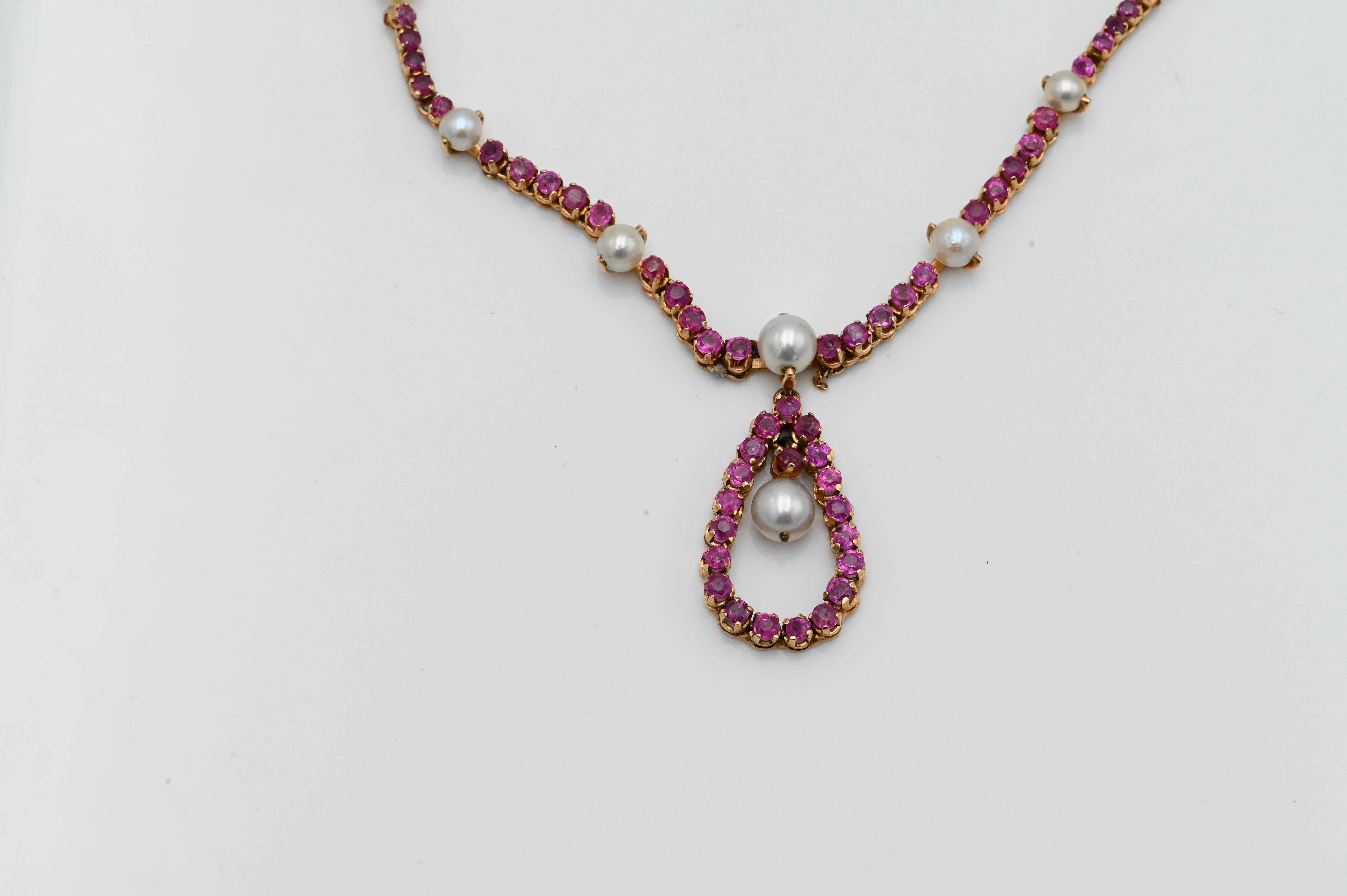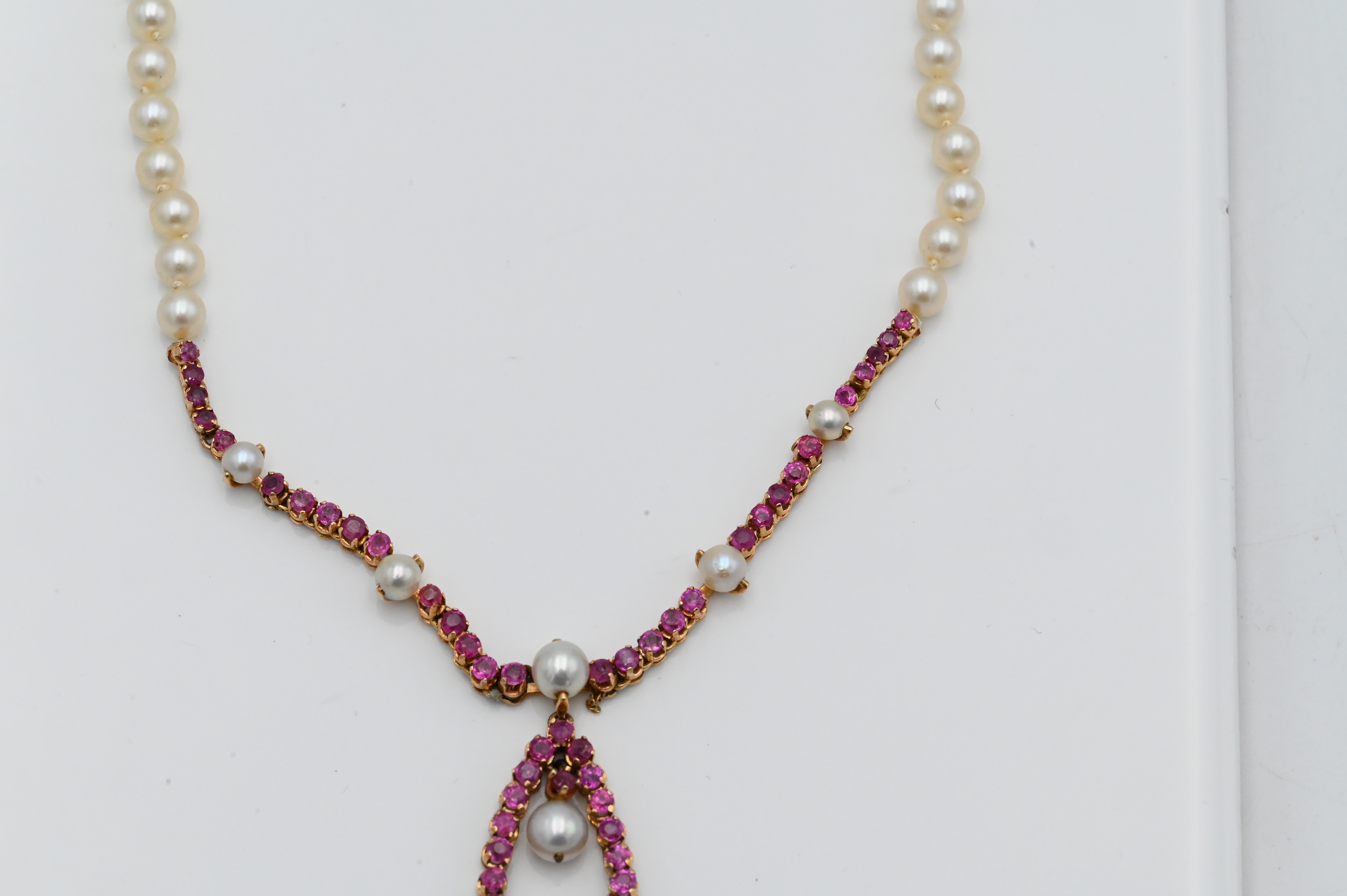Lot 91: 14 Karat Gold, Pearl and Pink Sapphire Necklace