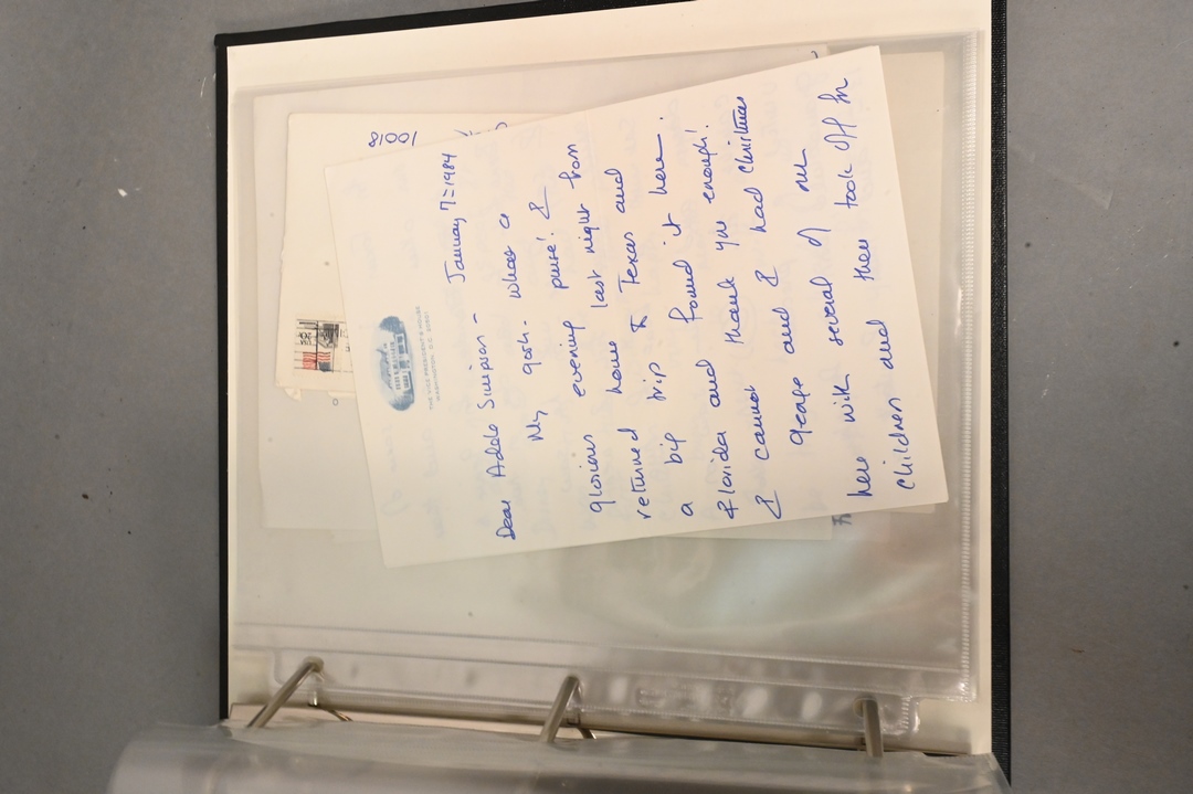 Lot 91: Binder of Approximately 60 Presidential Letters, Pictures, Postcards and Signatures