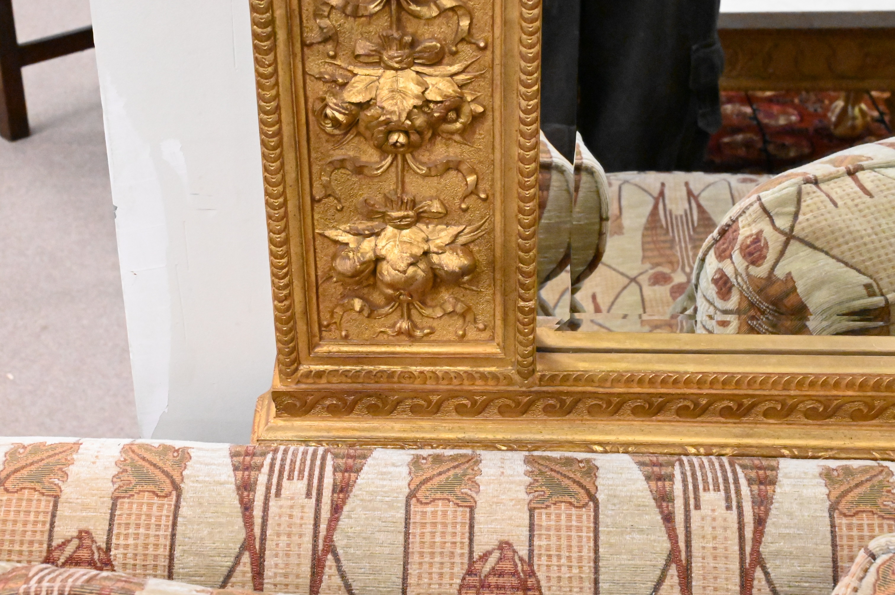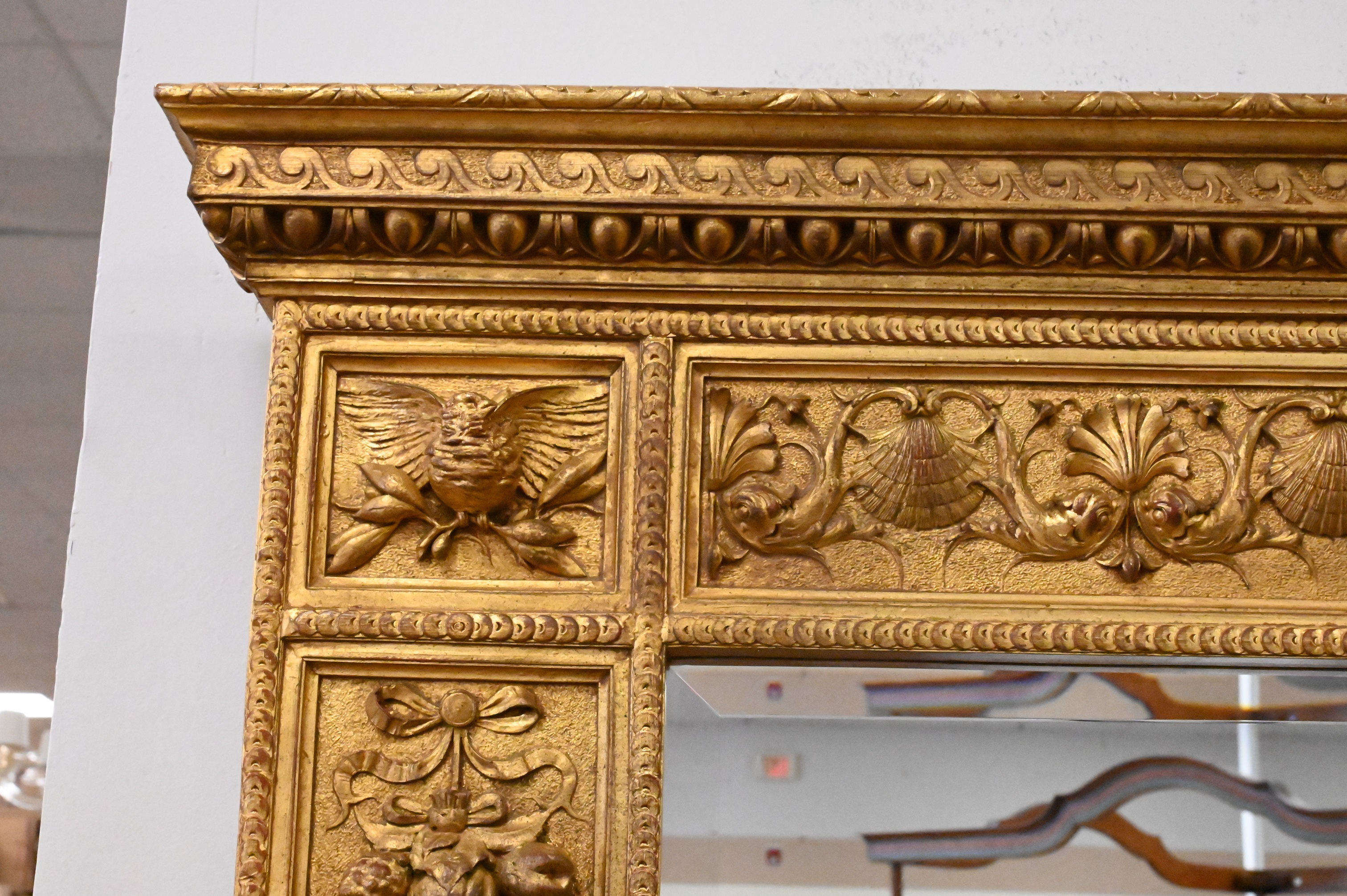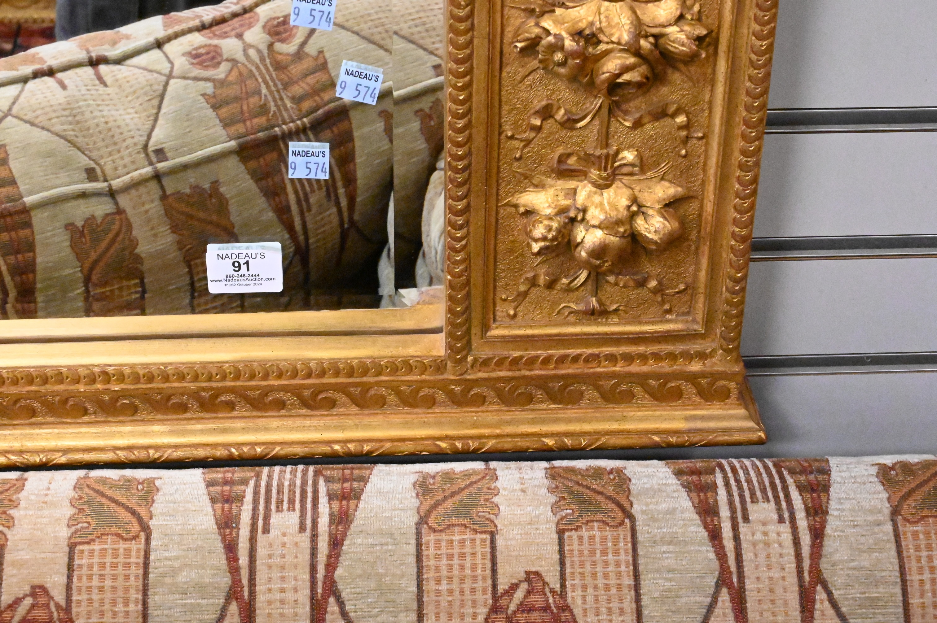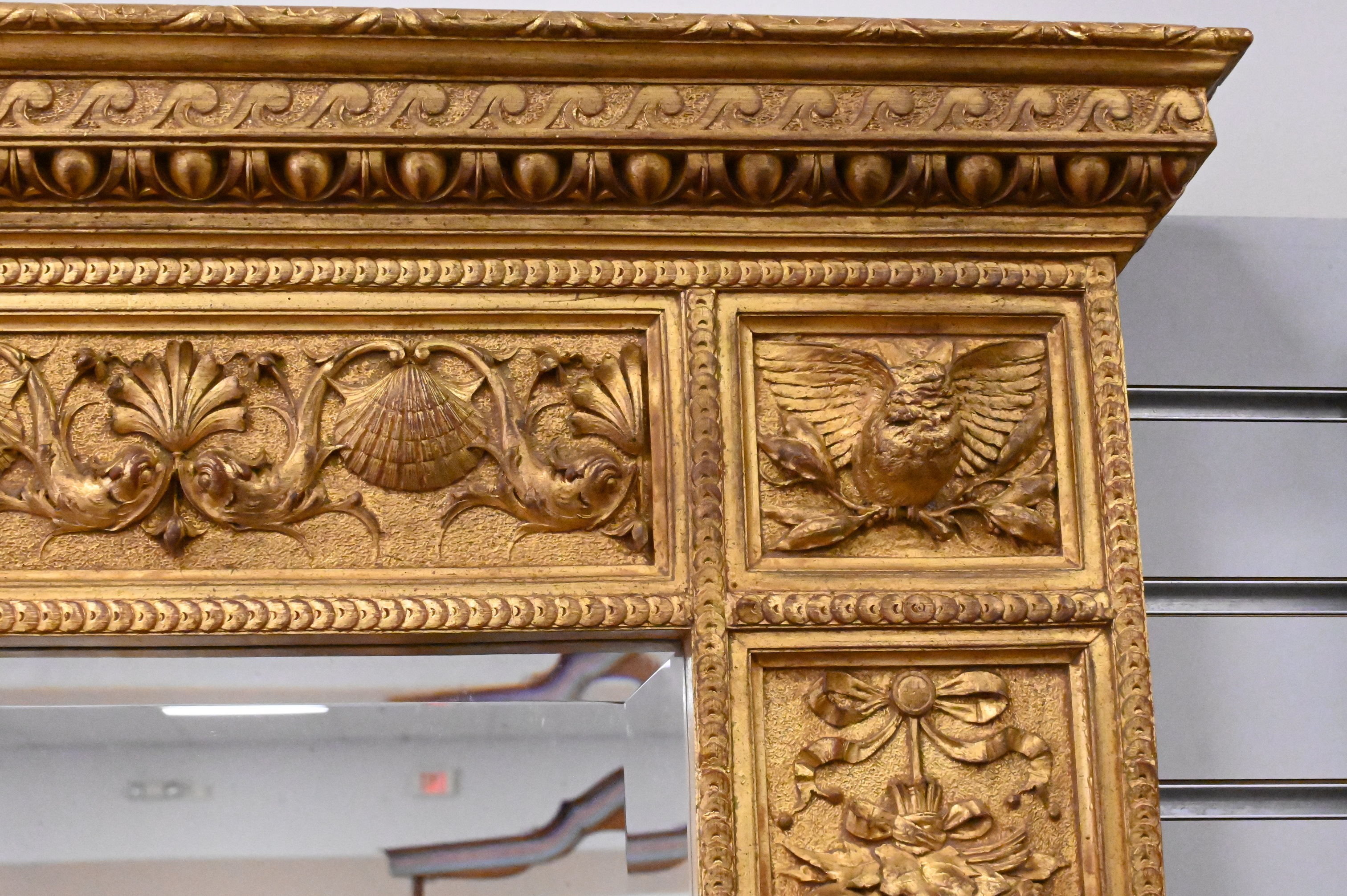 custom gilt decorated rectangular mirror with three dimensional birds, fruit,