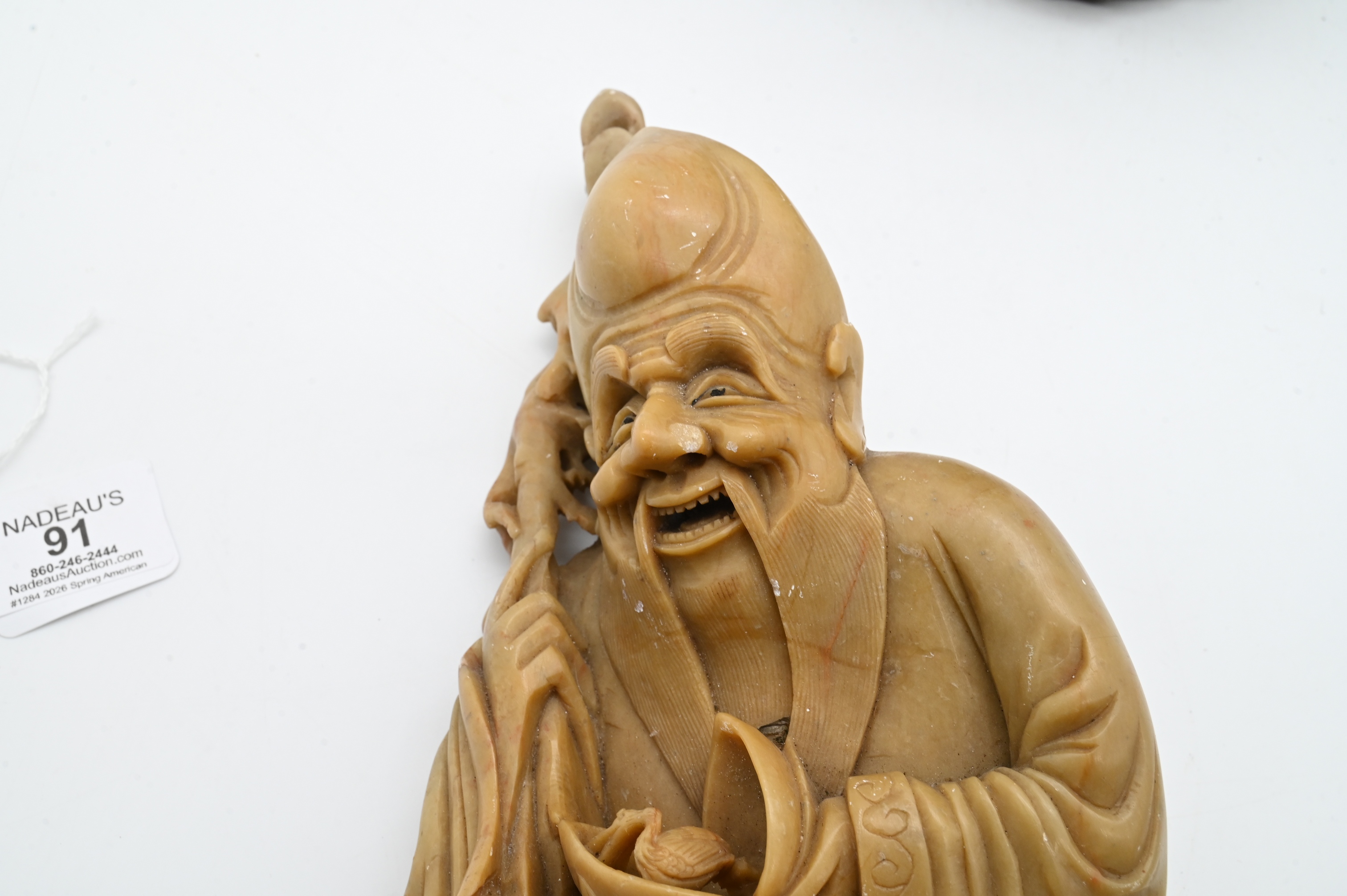 Lot 91: Chinese Carved Soapstone Figure on Stand