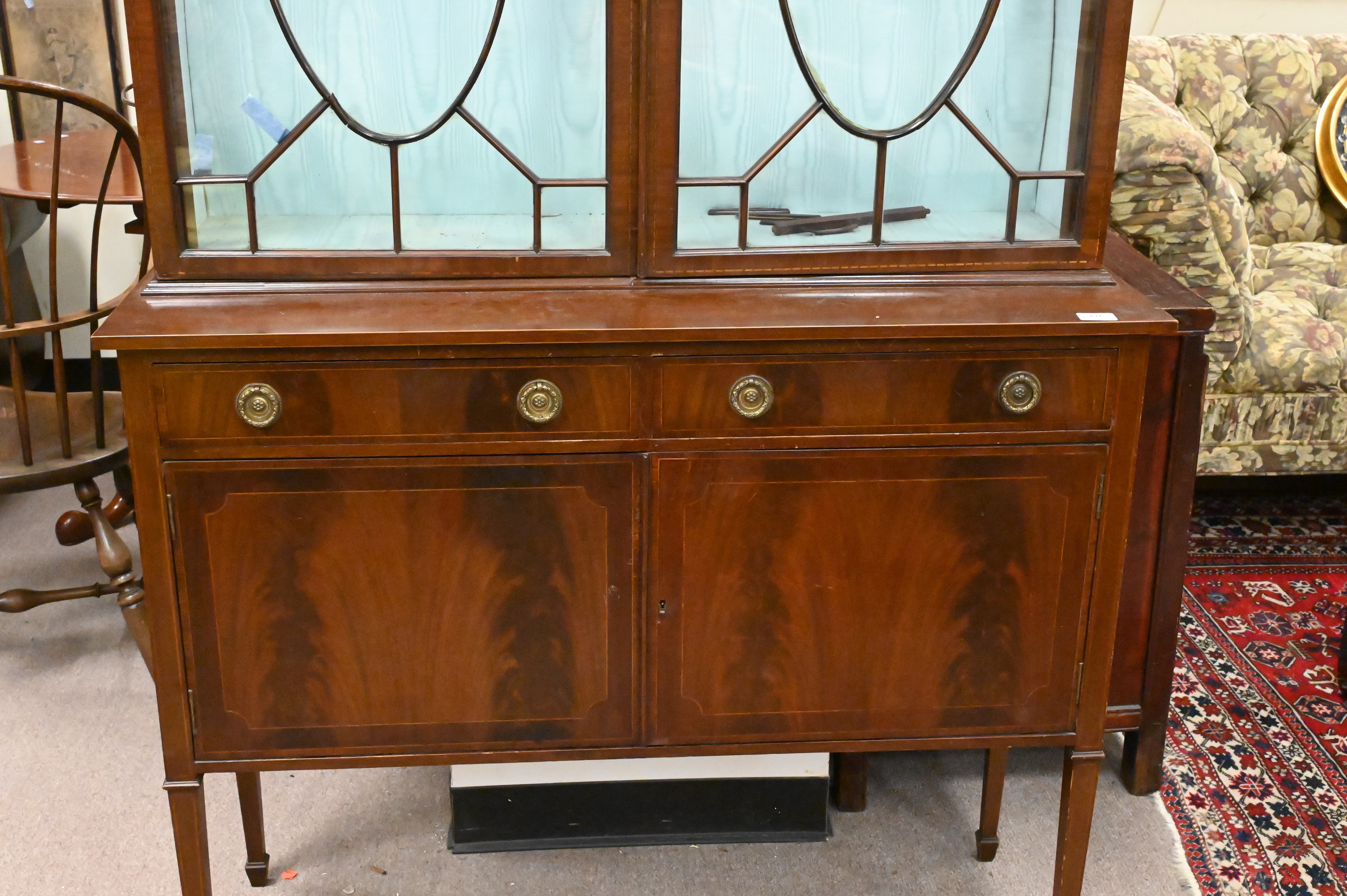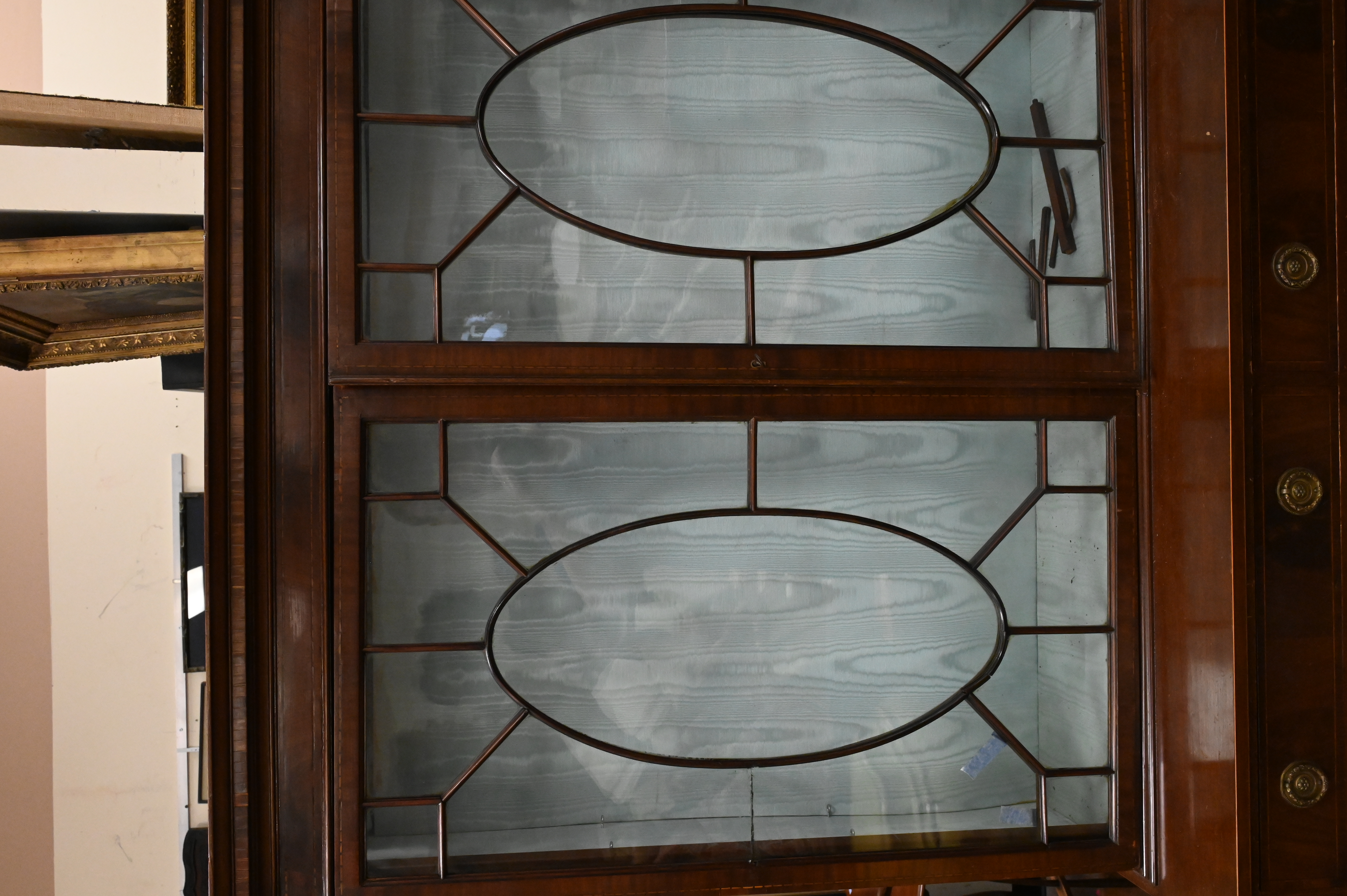 Federal Style Cabinet, in two parts, having glass shelves, height 73 inches, width 43 inches, depth 15 inches, Provenance: Julius H Jacobson II a Fifth Avenue Estate.