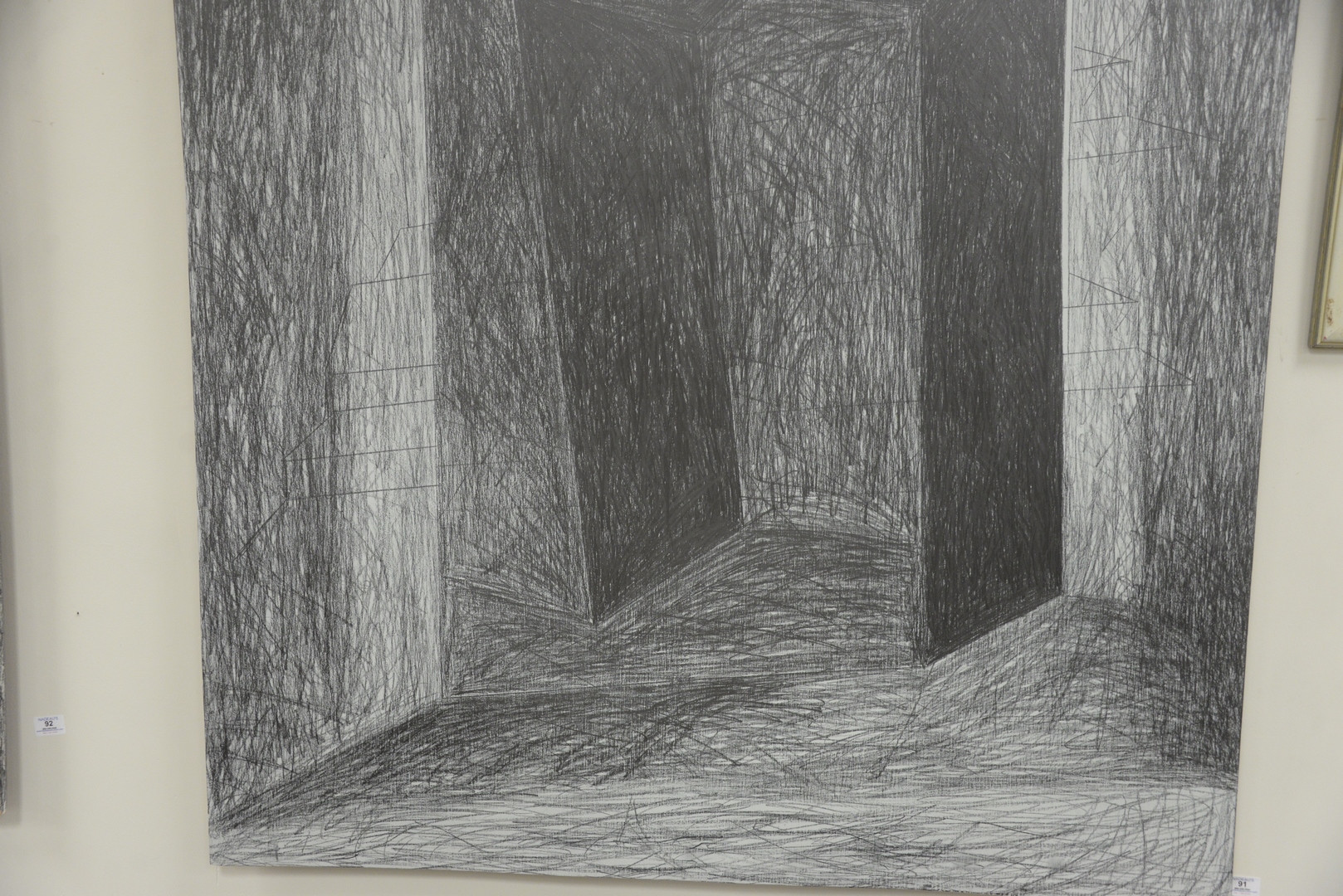 Lot 91: Pedro Calapez (Portuguese, b. 1953), untitled, 1988, graphite on prepared board; signed and dated on the reverse, 61″ x 49″.