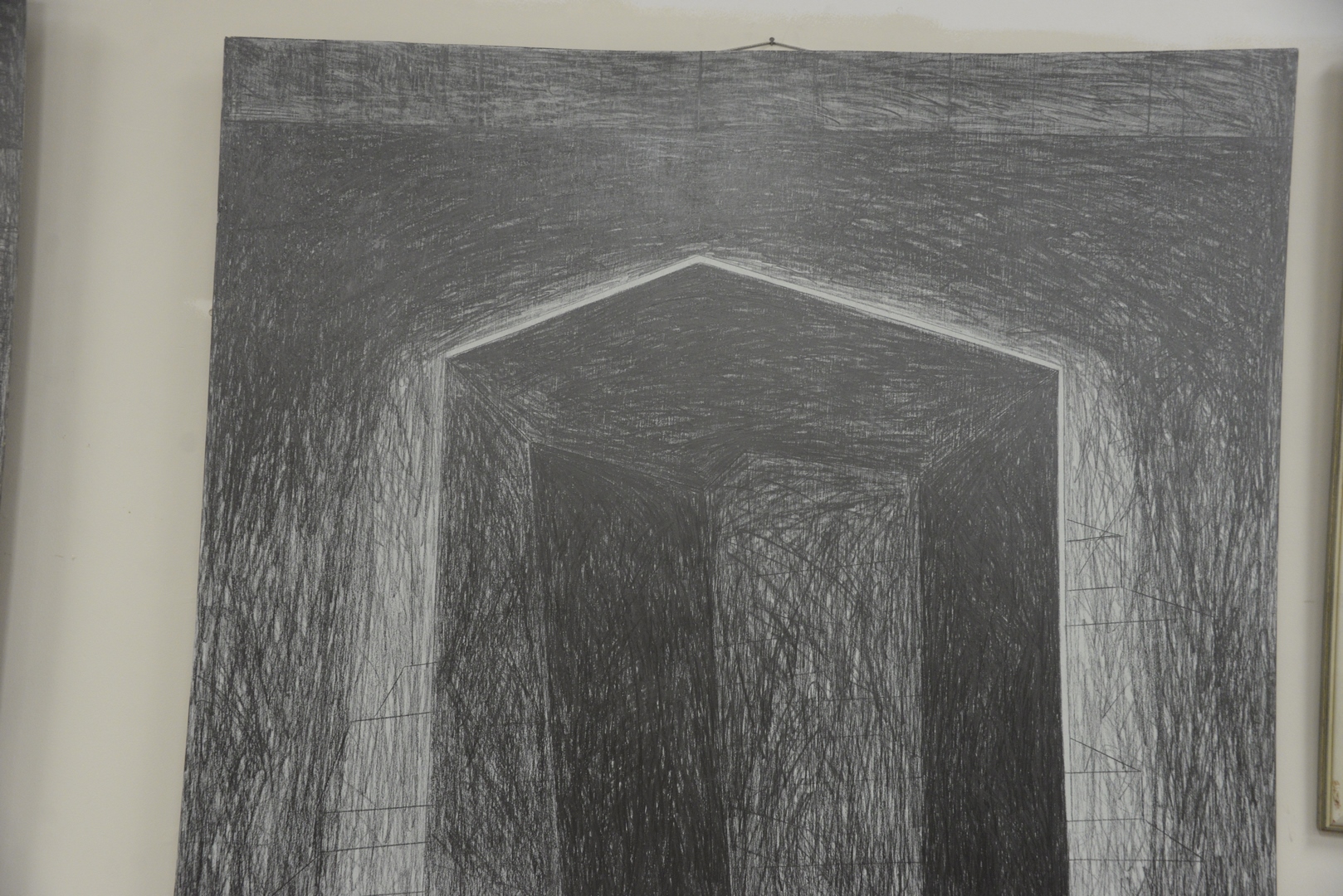 Pedro Calapez (Portuguese, b. 1953), untitled, 1988, graphite on prepared board; signed and dated on the reverse, 61″ x 49″.