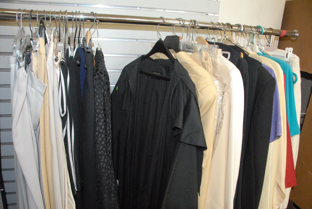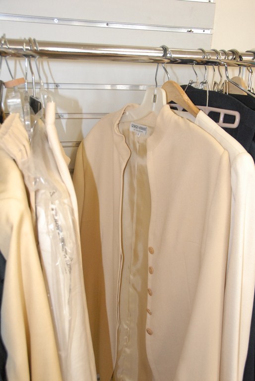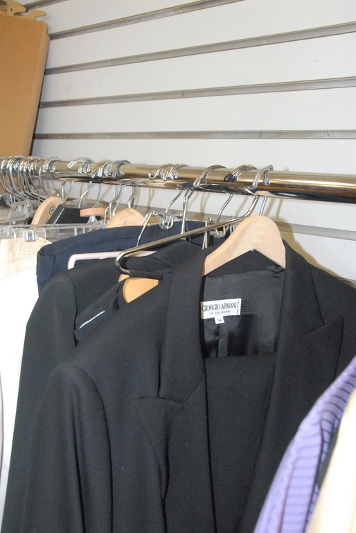 Rack of woman’s clothing Calvin Klein, Giorgio Armani suits, Henri Bendel, Nordstrom, etc.