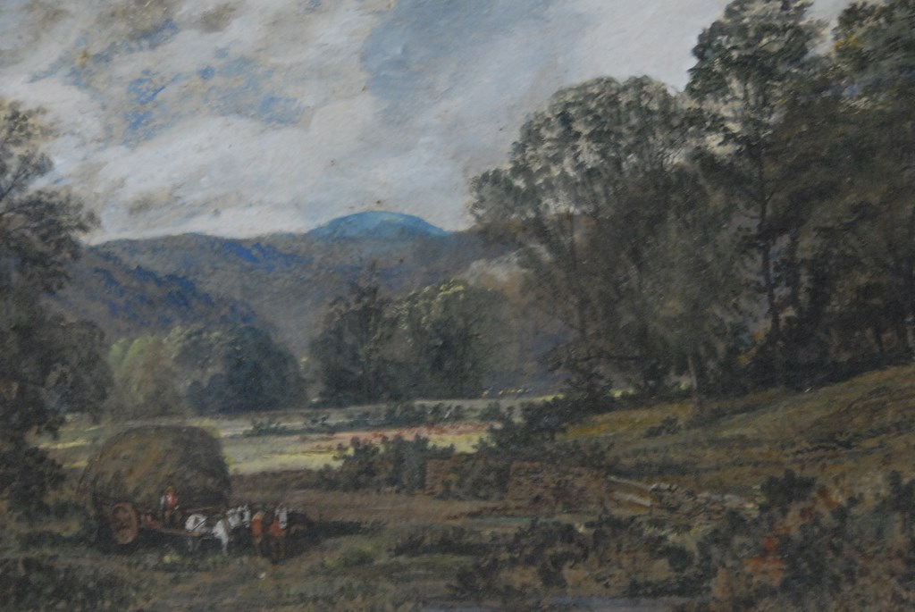 Lot 91: Richard Sebastian Bond 1808-1866, WELSH HARVEST oil on cardboard unsigned, marked in plaque, 19 x 30.