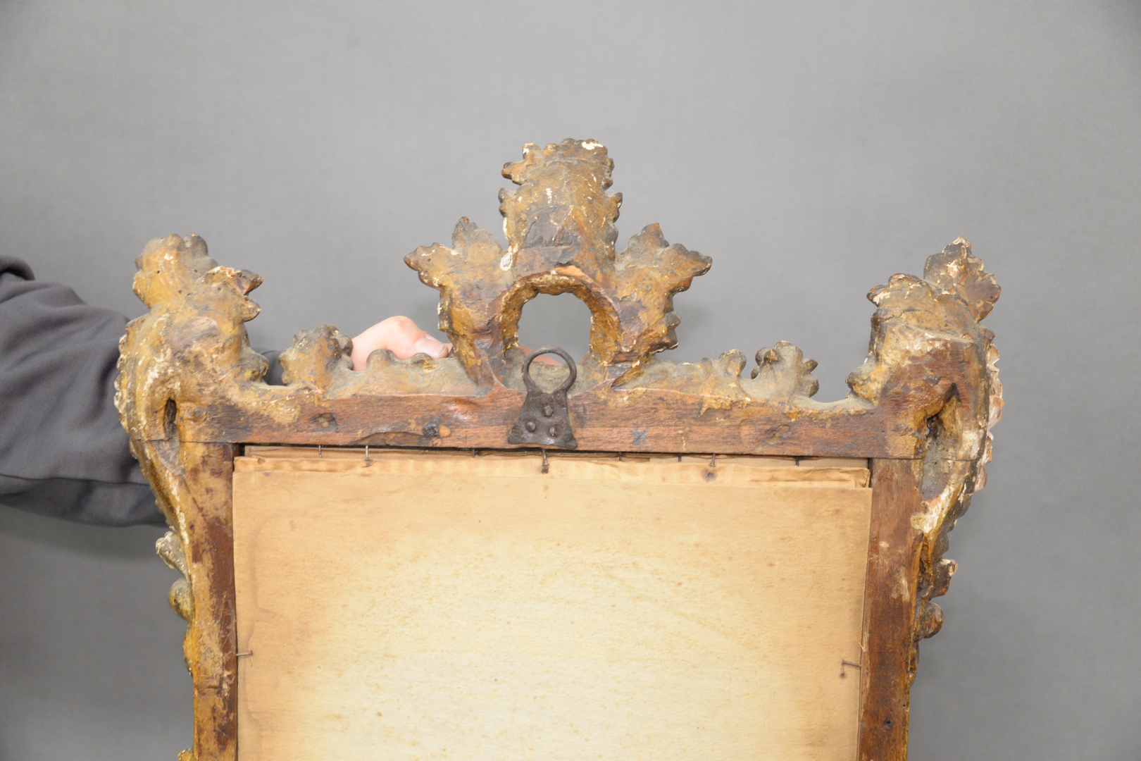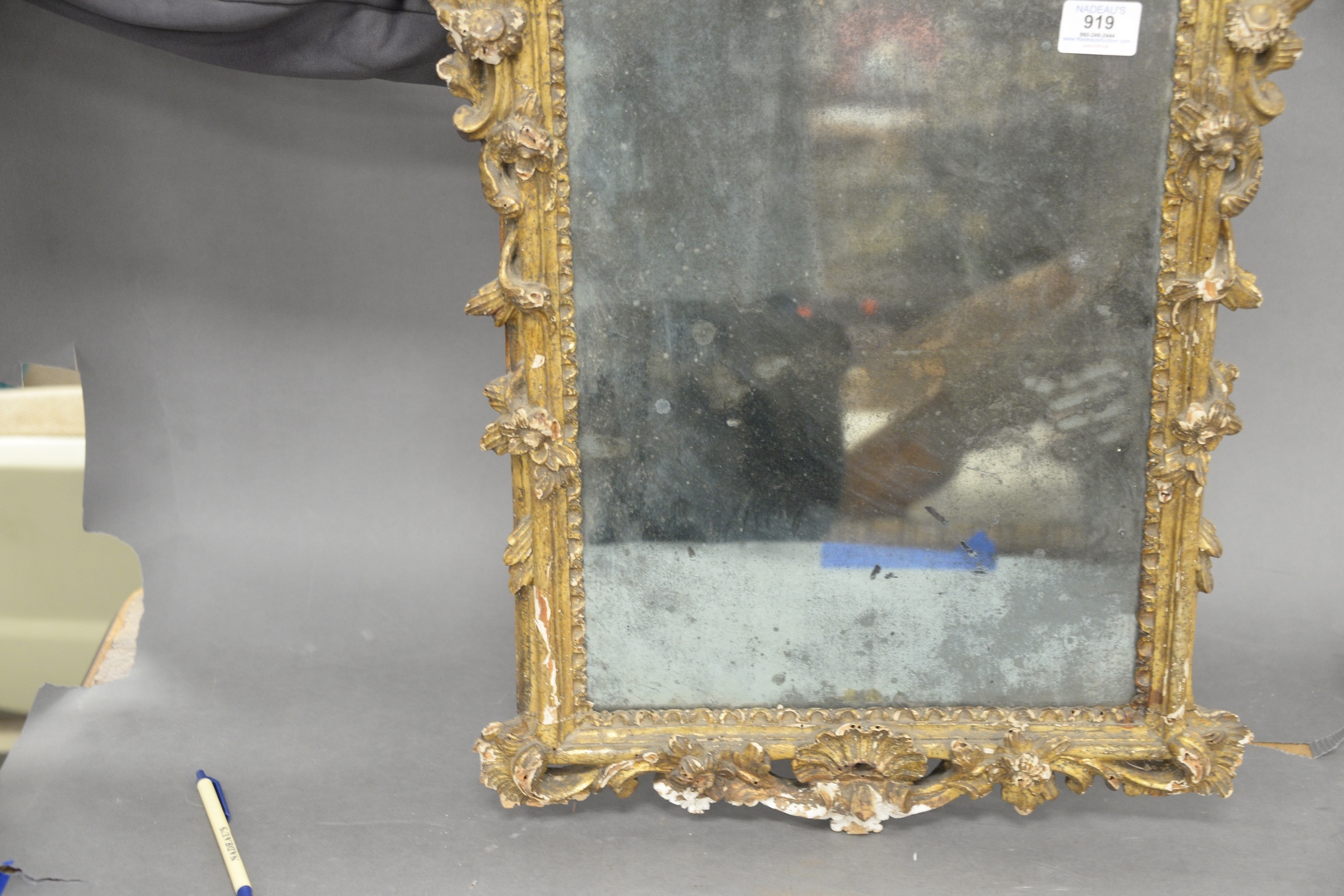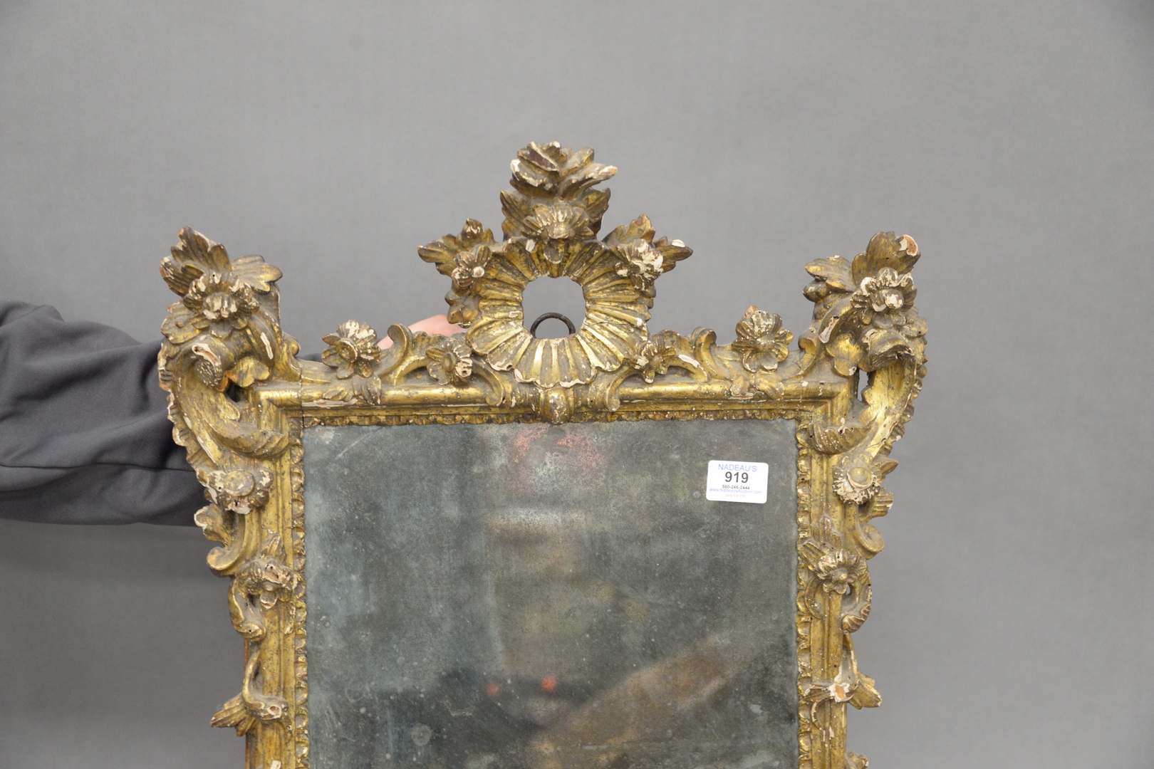 Lot 919: Italian Carved Giltwood Framed Mirror, 18th century or later, height 26 inches, width 17 1/2 inches.