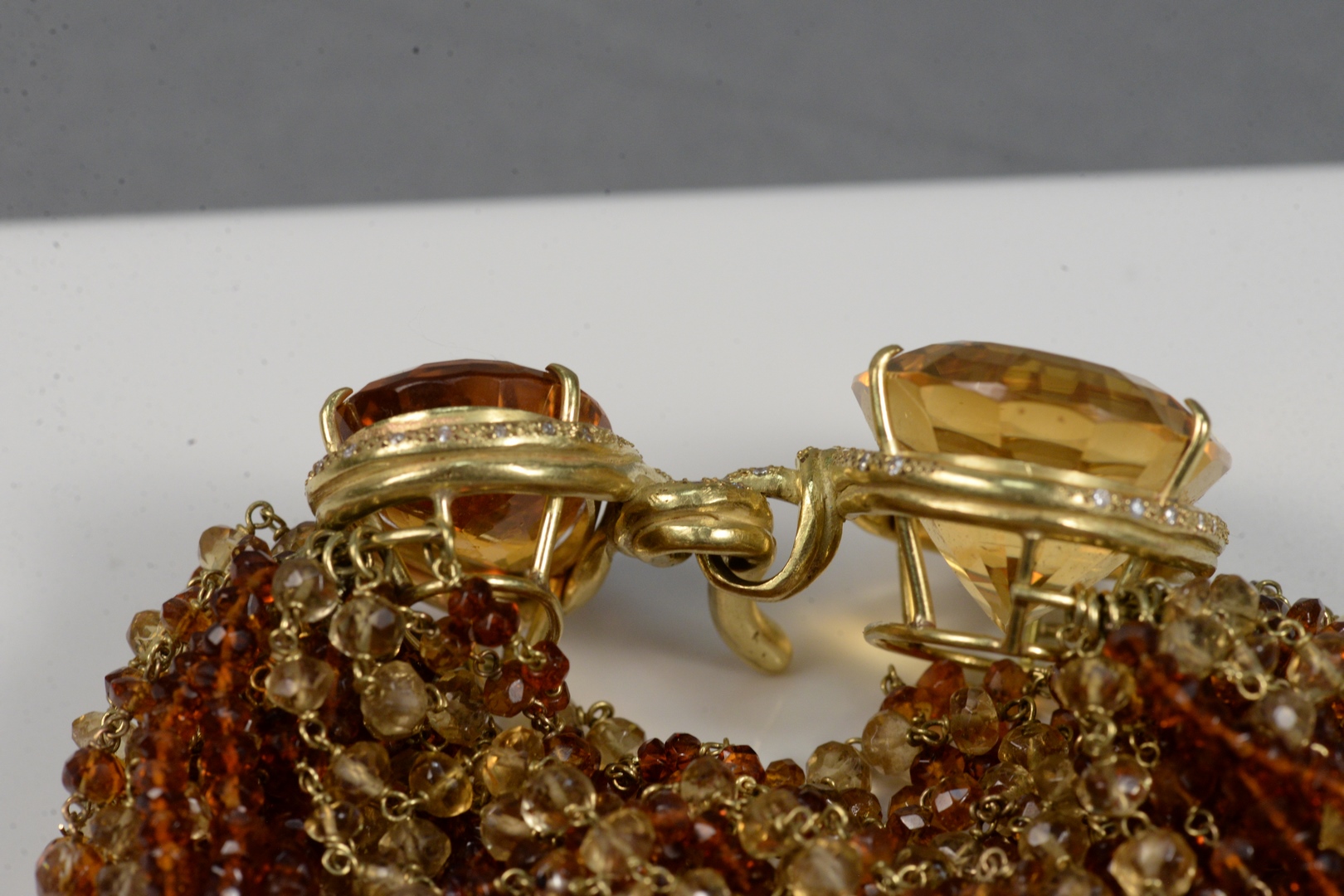 Lot 92: 18 Karat Gold and Beaded Bracelet with clasp mounted with large oval citrines, surrounded by small diamonds length 8 inches