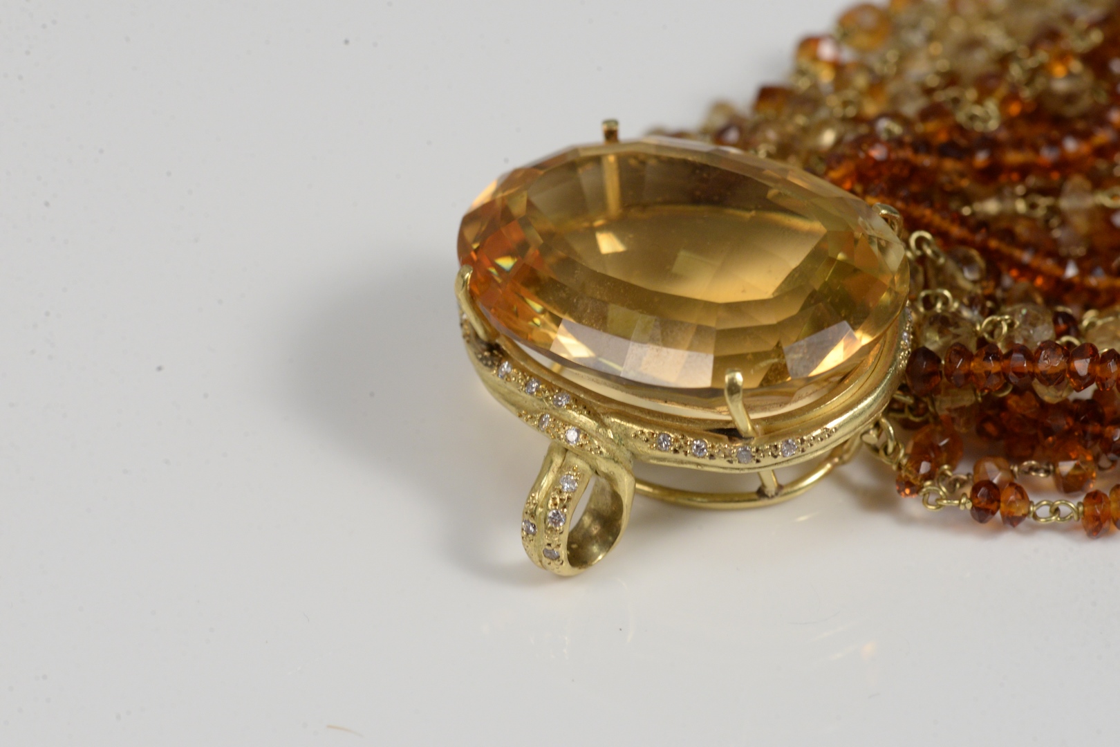 with clasp mounted with large oval citrines, surrounded by small diamonds