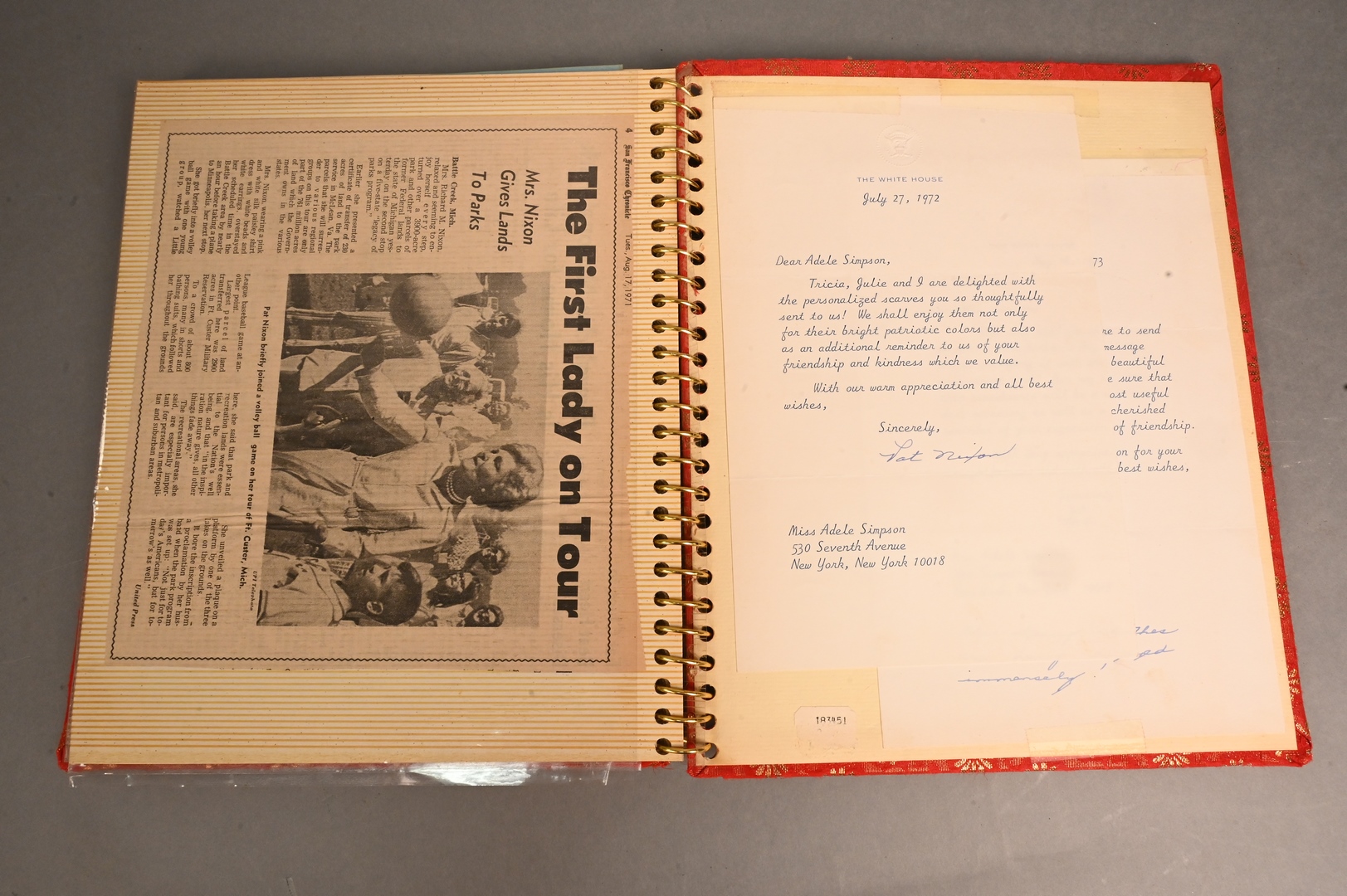 Binder with Signed Letters, to include Pat Nixon, photographs, along with Nixon Inauguration invites, etc.