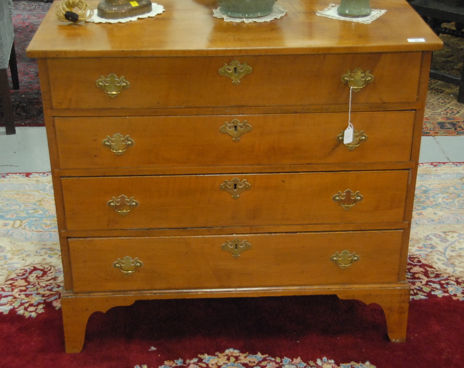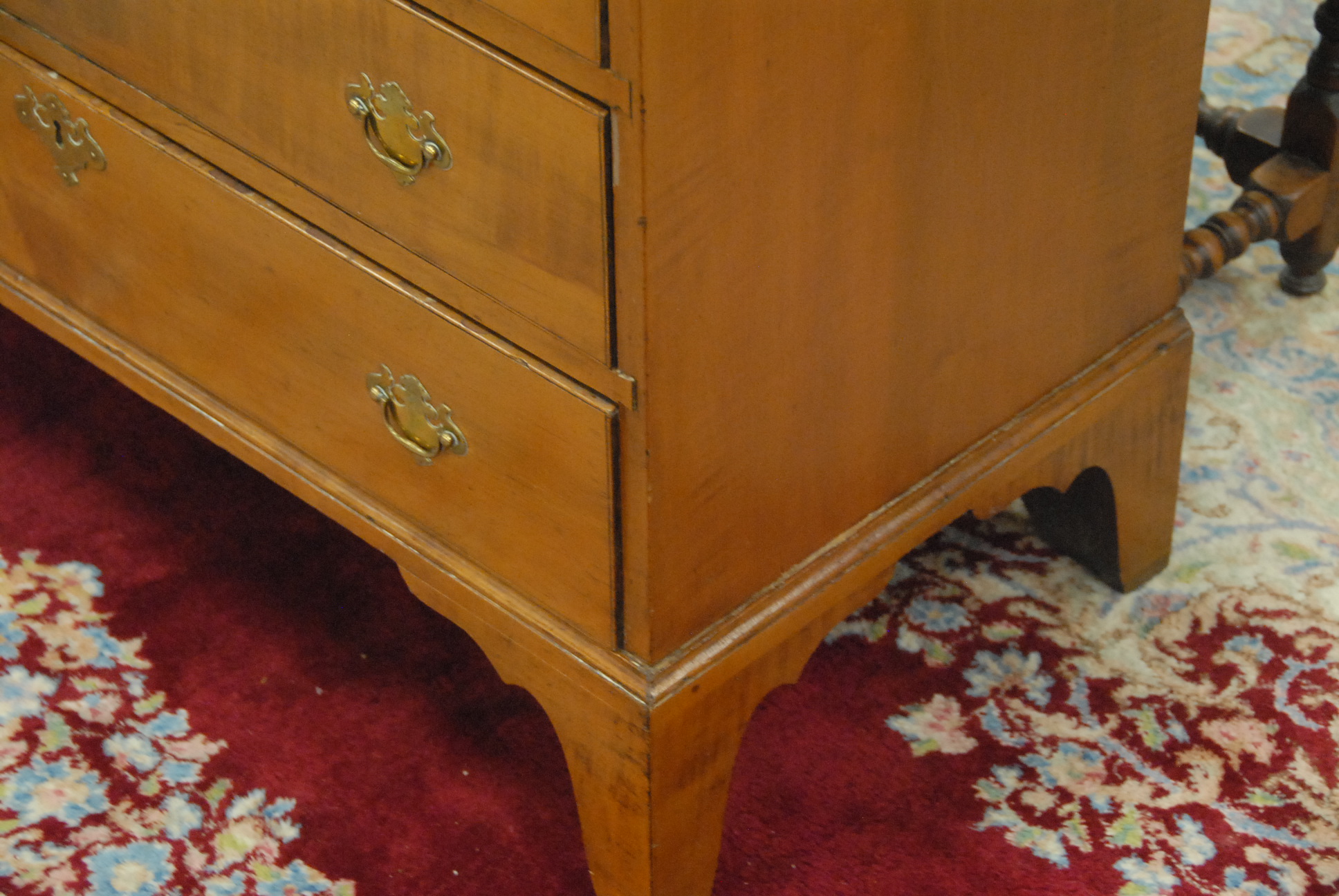 Lot 92: Chippendale maple chest with four graduated drawers on bracket base, circa 1780-1800. ht. 35 in. wd. 31 in. dp. 17 3/4 in. Provenance: Property from The Estate of W. Scott Van Alstyne of Essex, Connecticut.