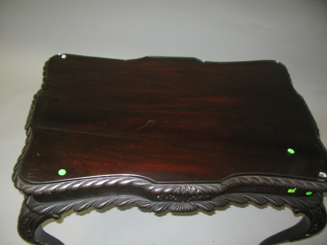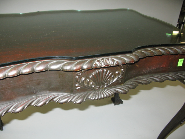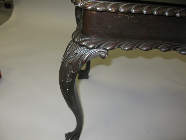 Chippendale style table, cabriole legs and ball and claw feet.