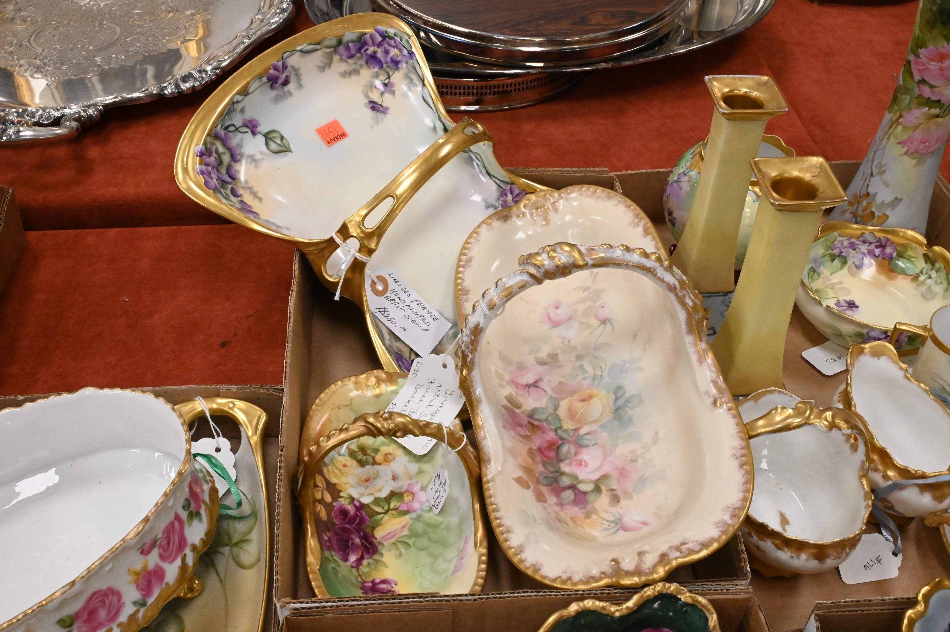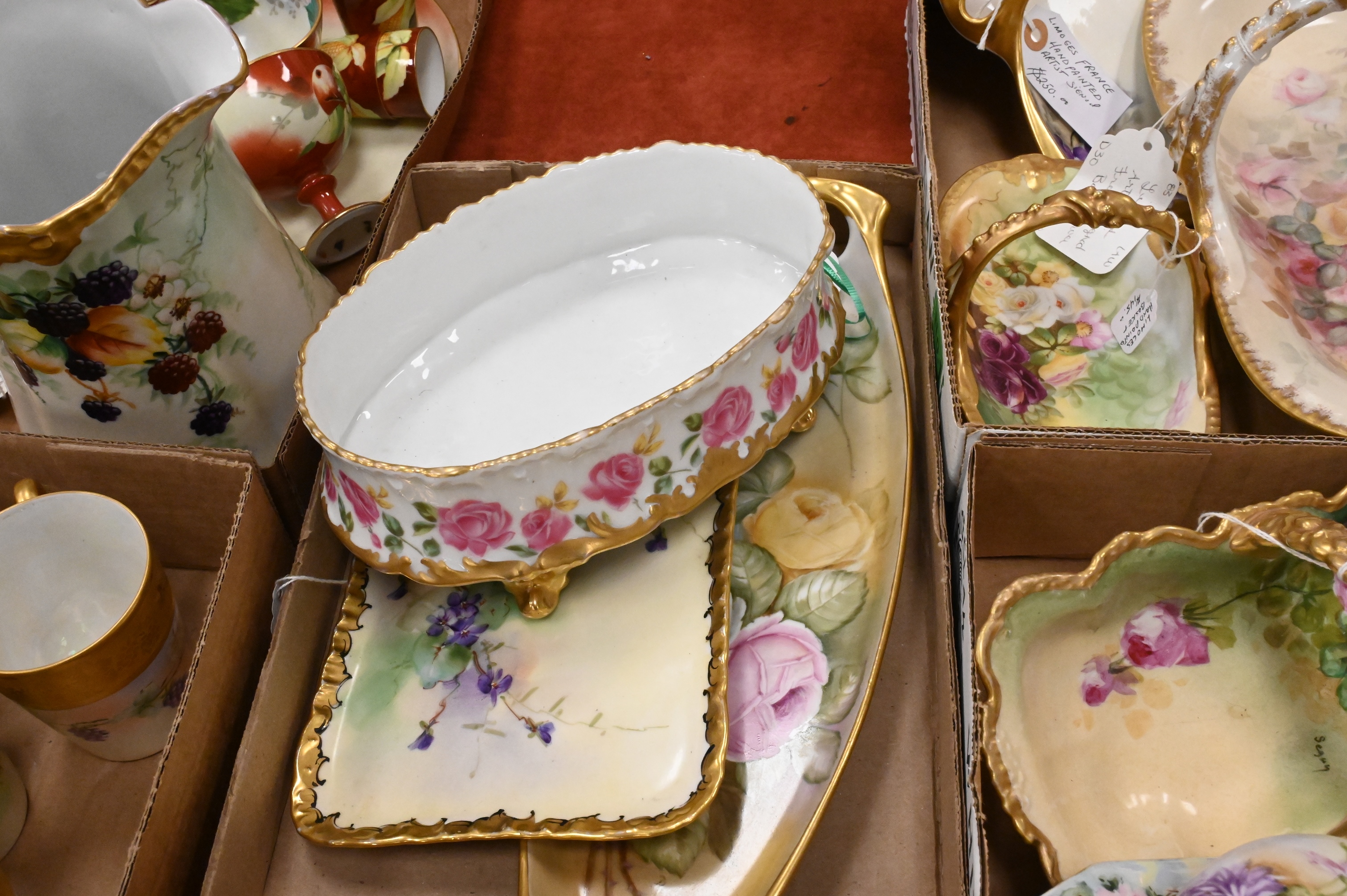 Lot 92: Five Tray Lots of Limoges Hand Painted Porcelain