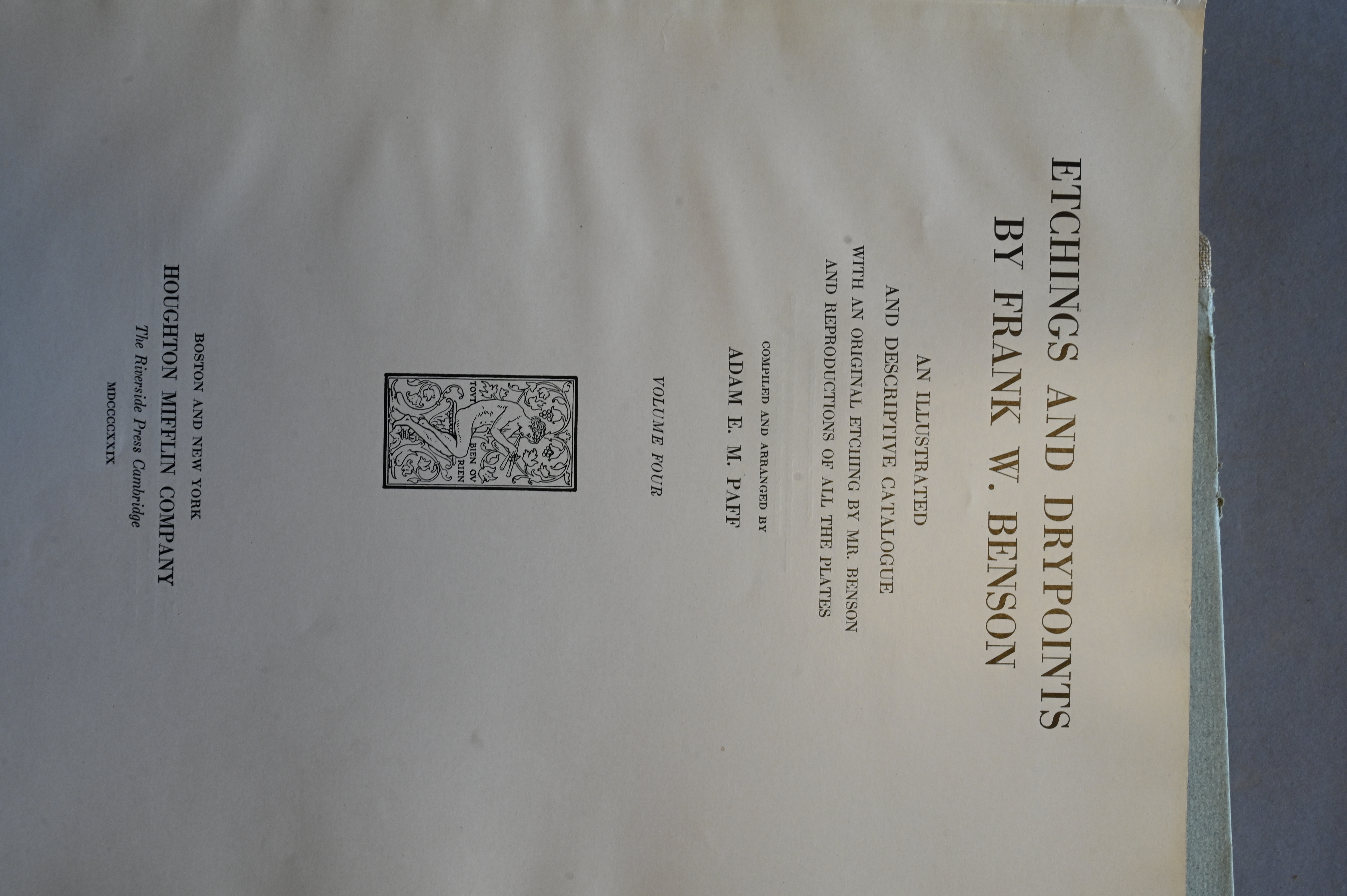 Lot 92: Four Books on Frank Benson (American 1862-1951) Etchings and Drypoints by Adam Paff