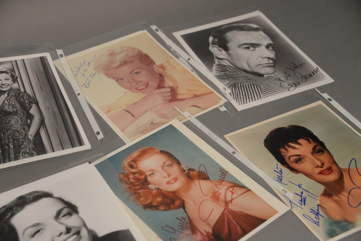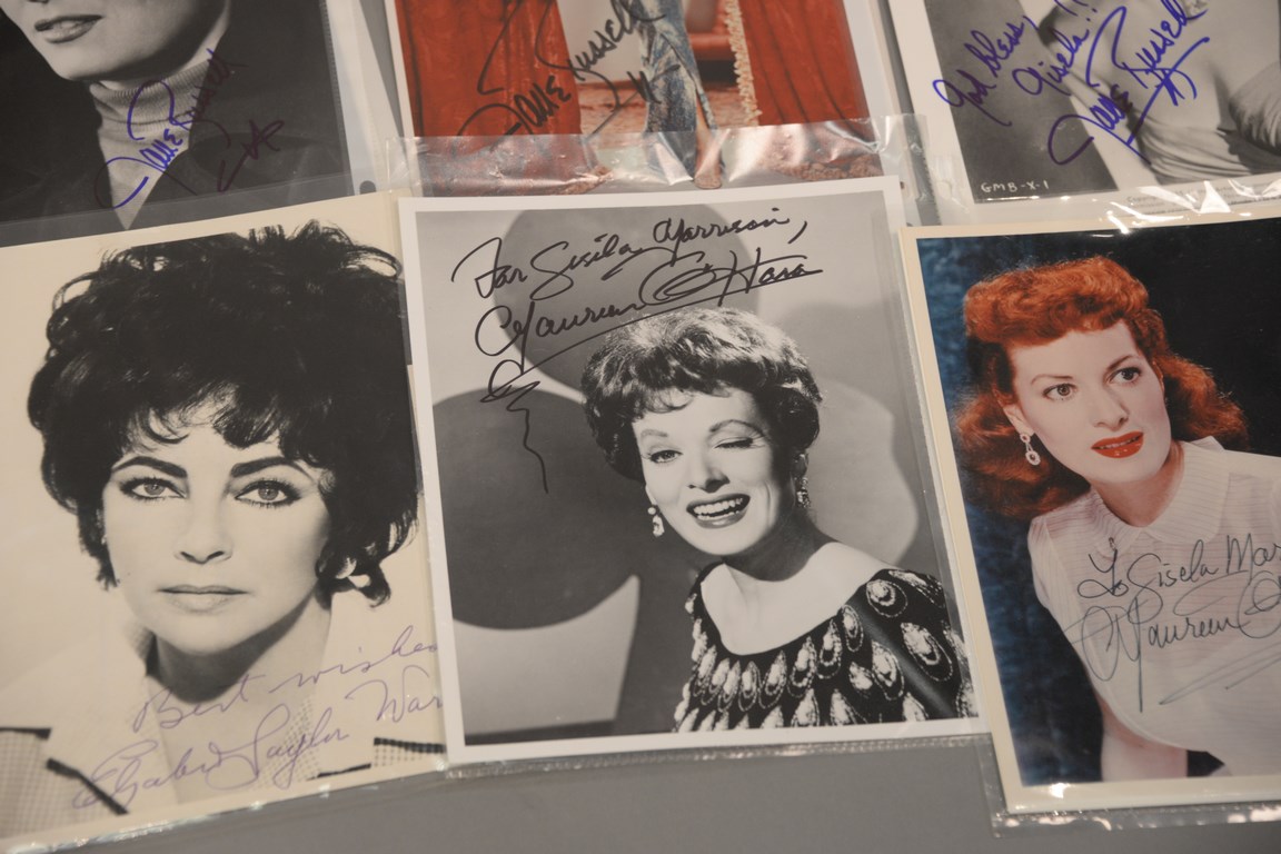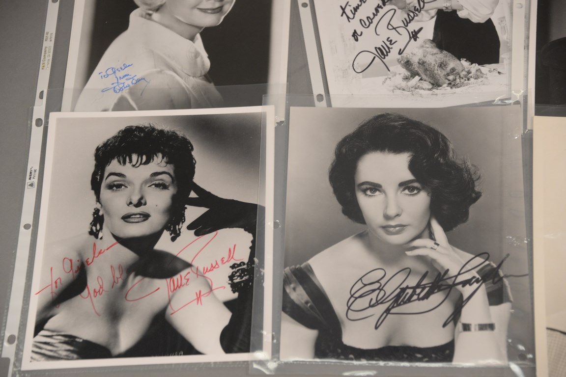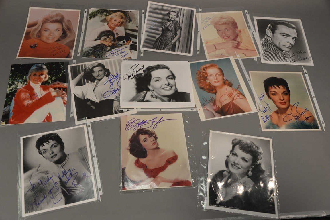 Lot 92: Group of 28 signed photographs including 2 Sean Connery, 3 Maureen O’Hara, 3 Elizabeth Taylor with COA, 10 Jane Russell, and 10 Dori…