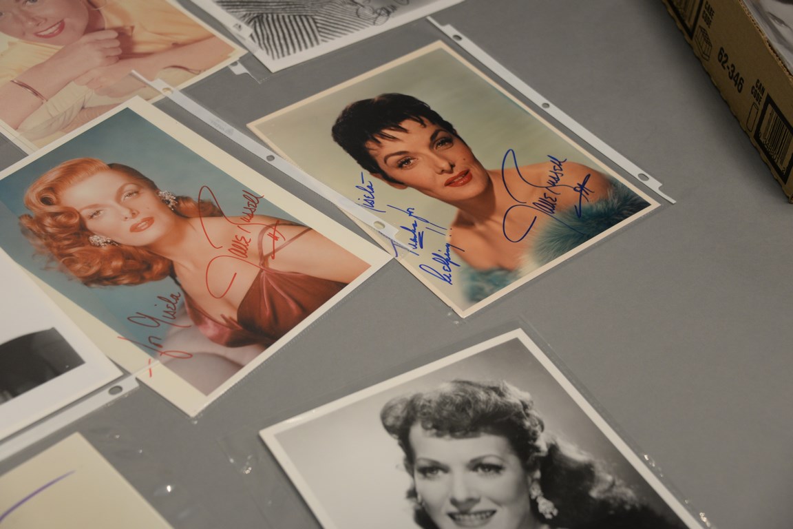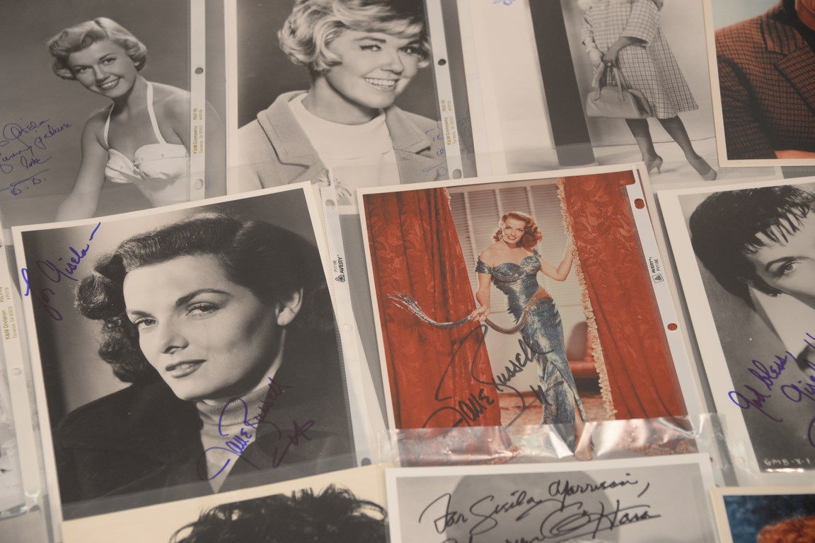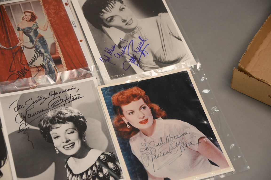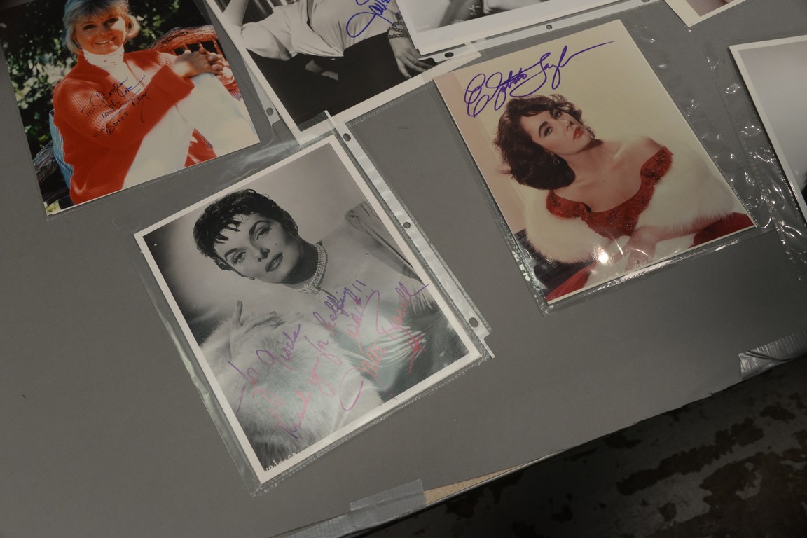 Lot 92: Group of 28 signed photographs including 2 Sean Connery, 3 Maureen O’Hara, 3 Elizabeth Taylor with COA, 10 Jane Russell, and 10 Dori…