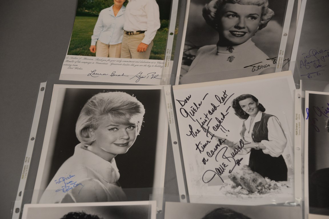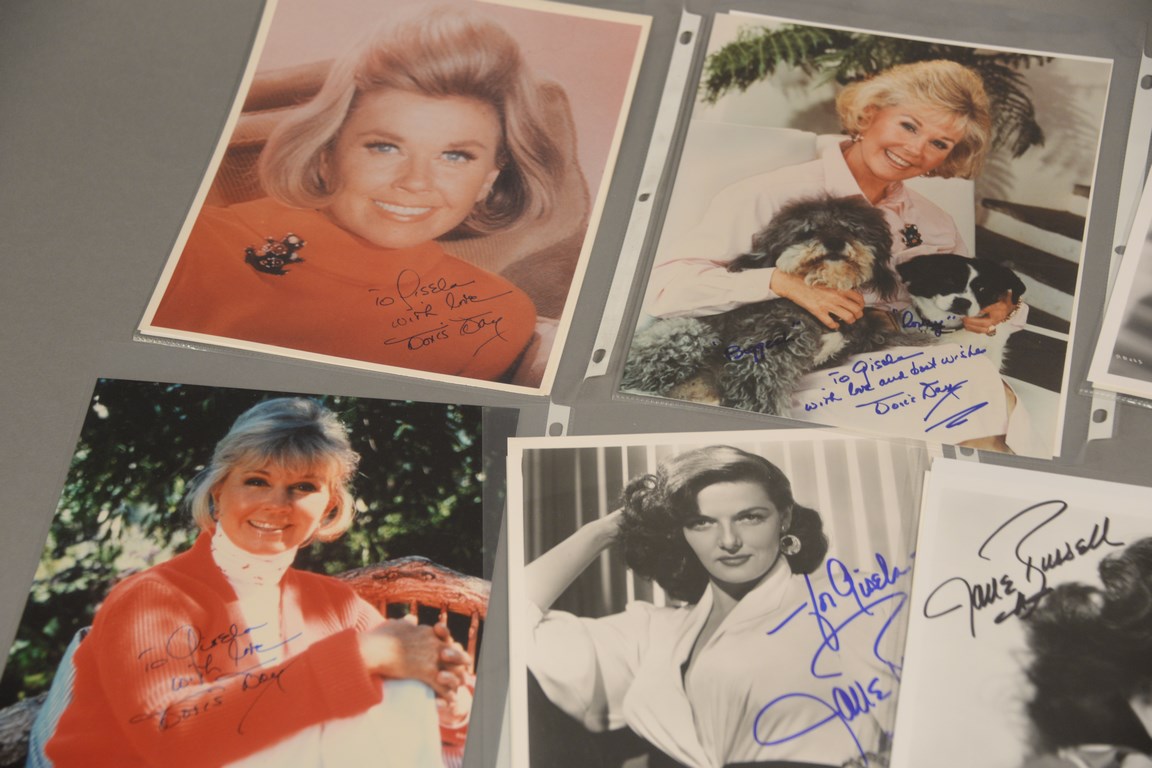 Group of 28 signed photographs including 2 Sean Connery, 3 Maureen O’Hara, 3 Elizabeth Taylor with COA, 10 Jane Russell, and 10 Doris Day.