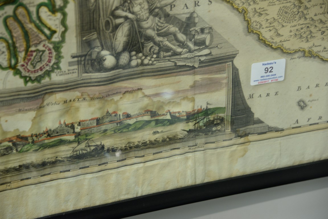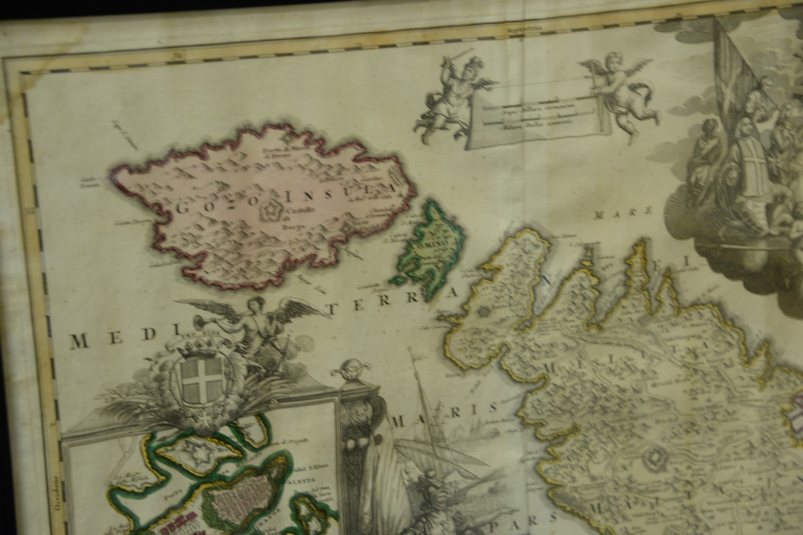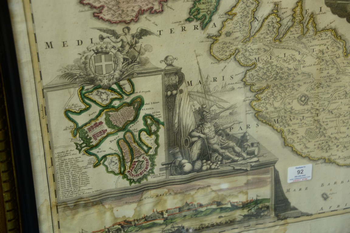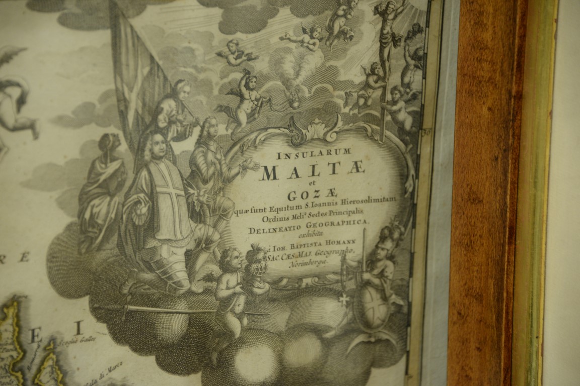 Lot 92: Johann Baptist Homann hand colored engraved map Insularum Maltae et Gozae, Nuremberg water stained lower left area plate size …