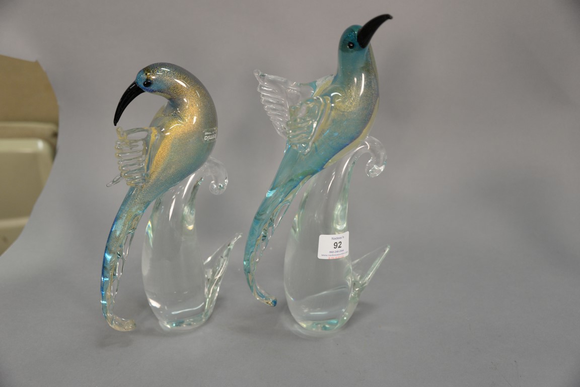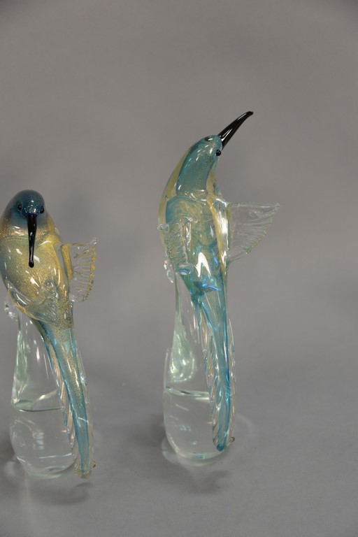 Pair of Formia Murano art glass birds of paradise. 11 1/2 x 13 1/2