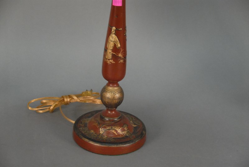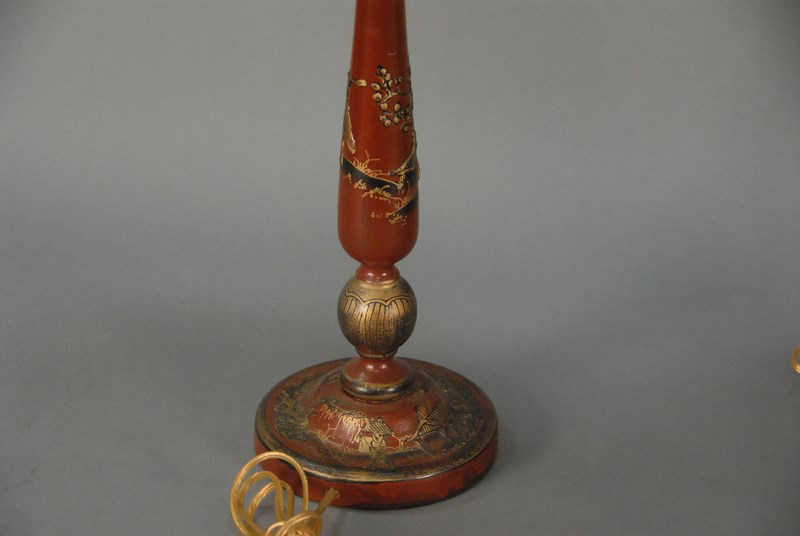 Pair of table lamps turned wood with Chinese lacquer, ht. 30in.