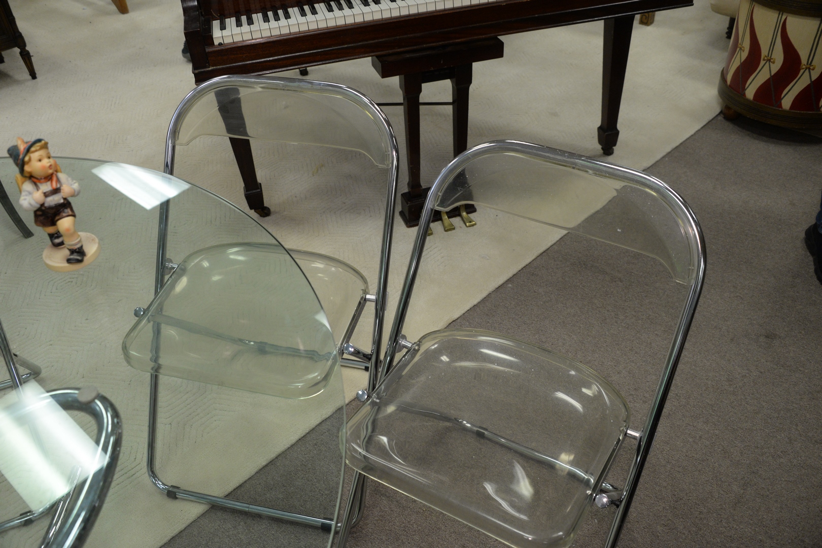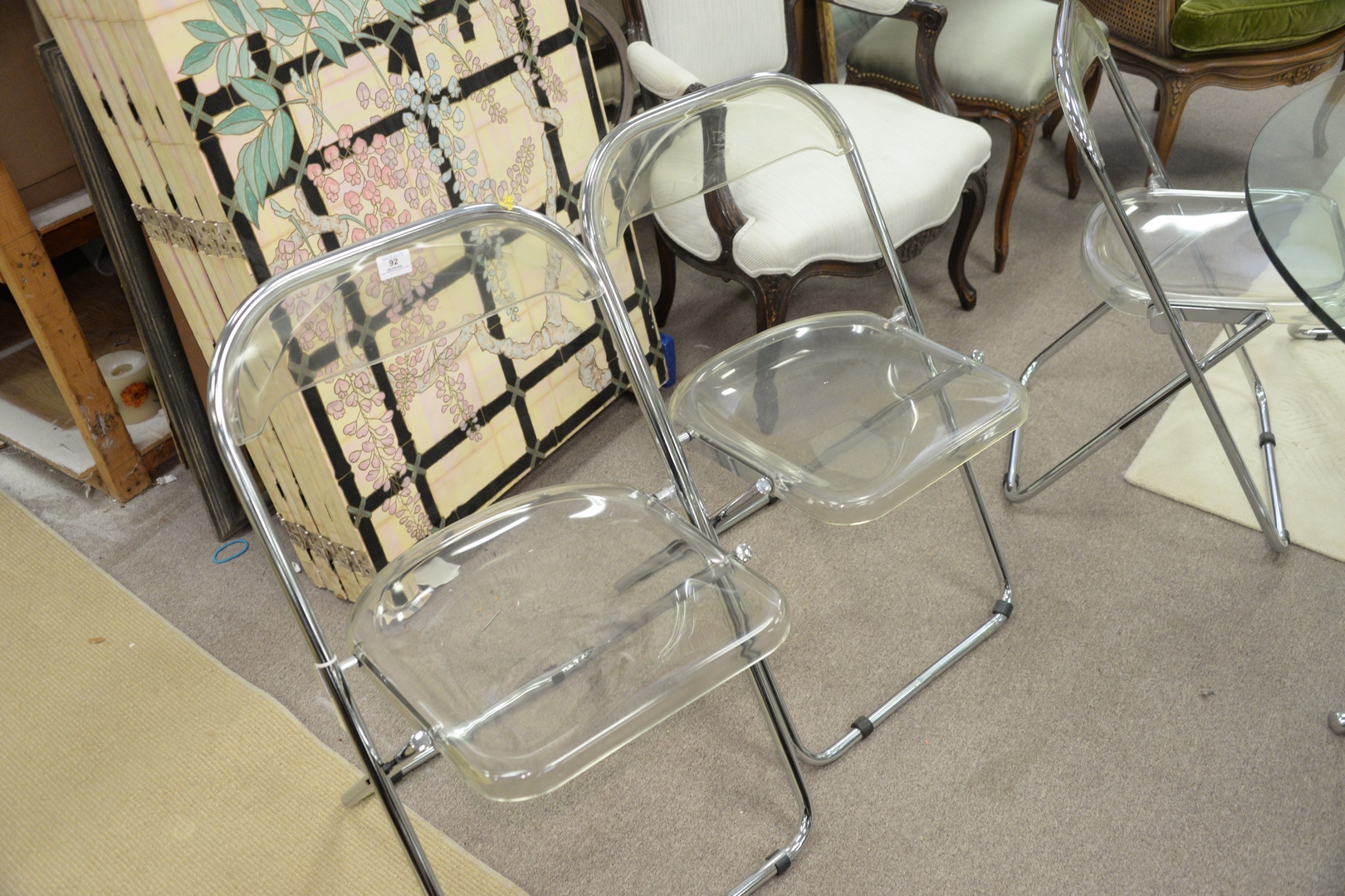 Set of Seven Chrome and Resin Folding Chairs, seat height 17 1/2 inches.