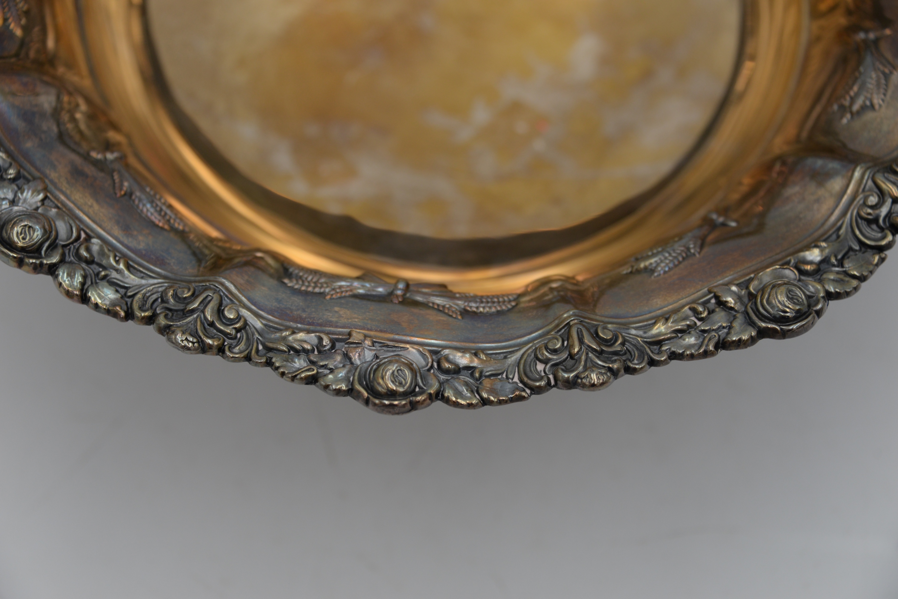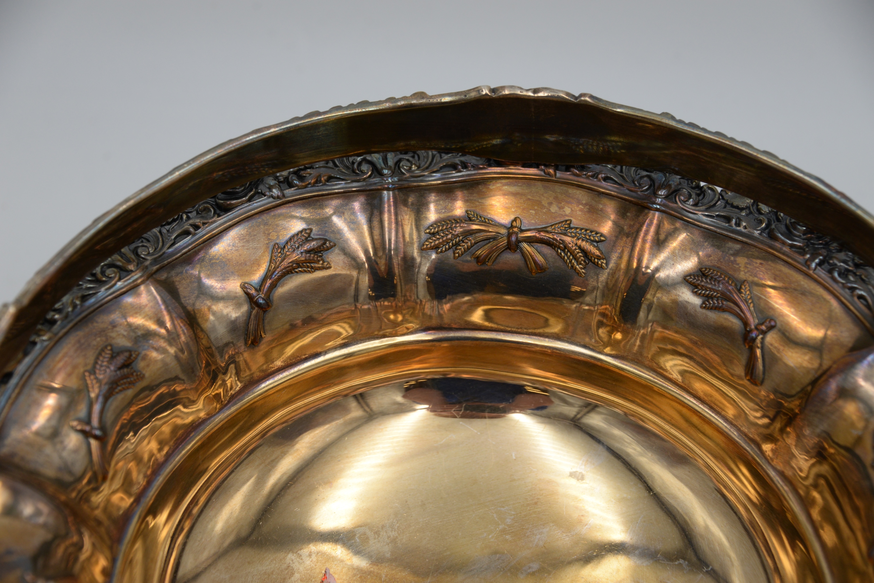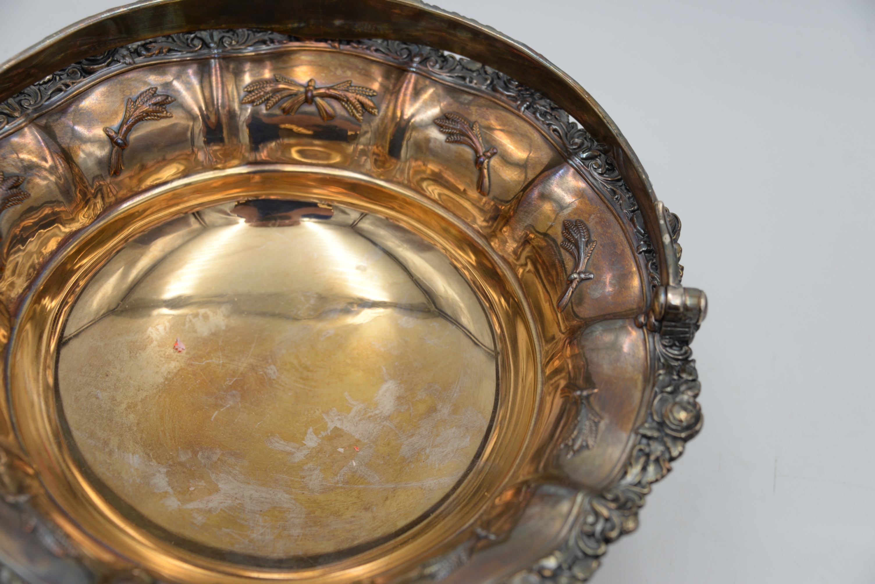 Sterling Silver Basket, having swing handle with wheat motif, bowl and floral edge, all on lobbed base, height 11 1/2 inches, diameter 12 1/2 inches, 45.9 t.oz.