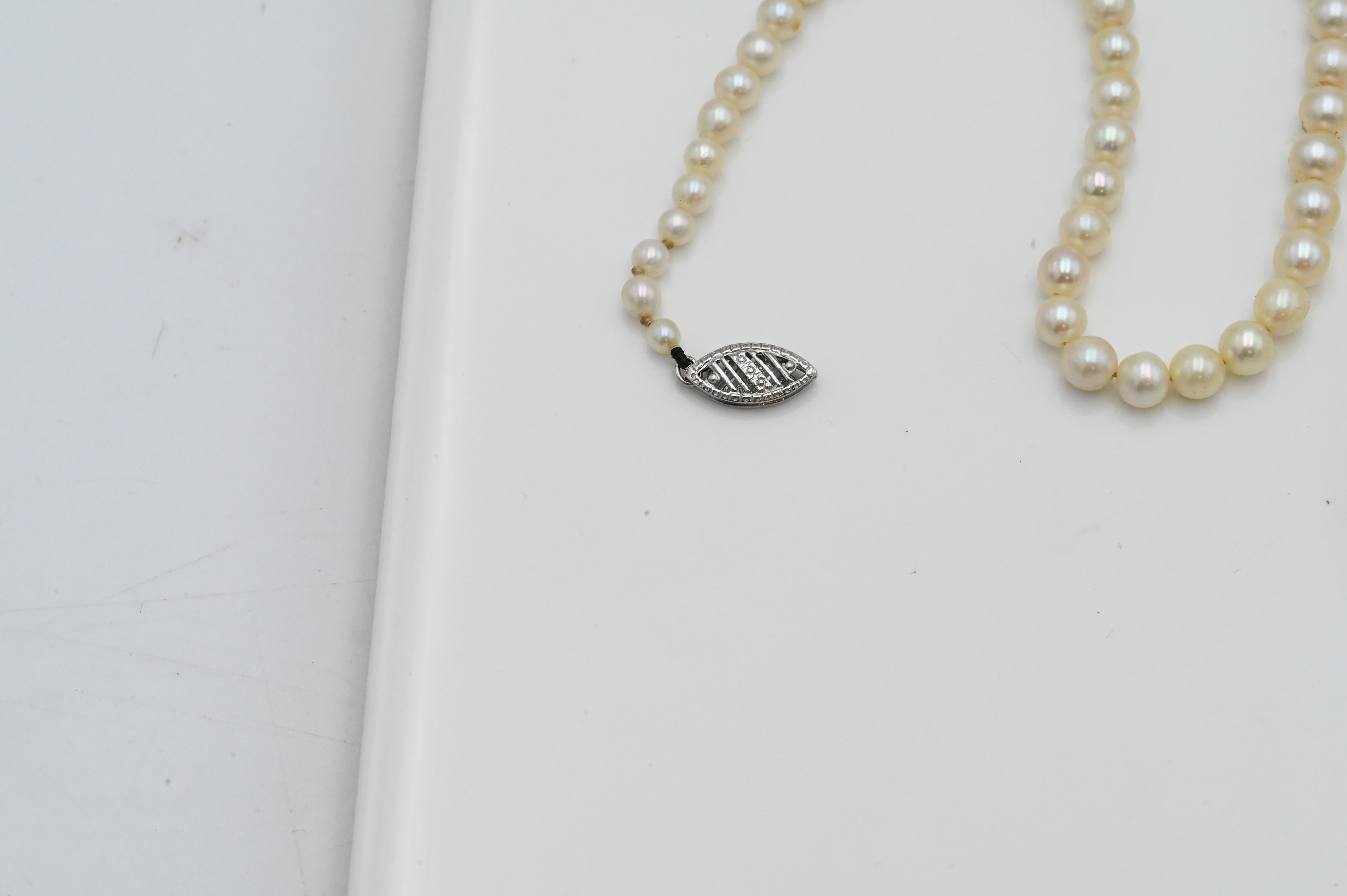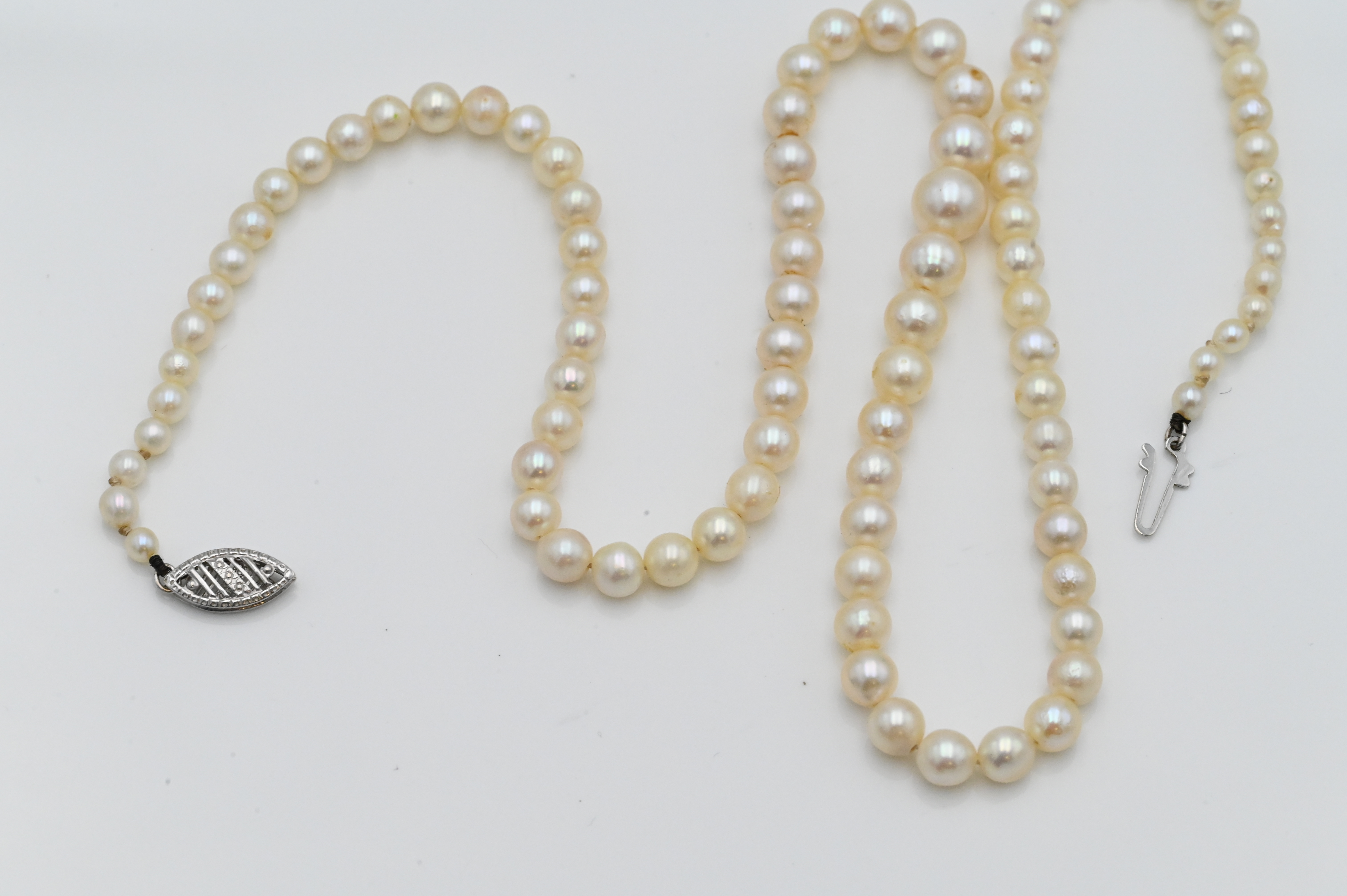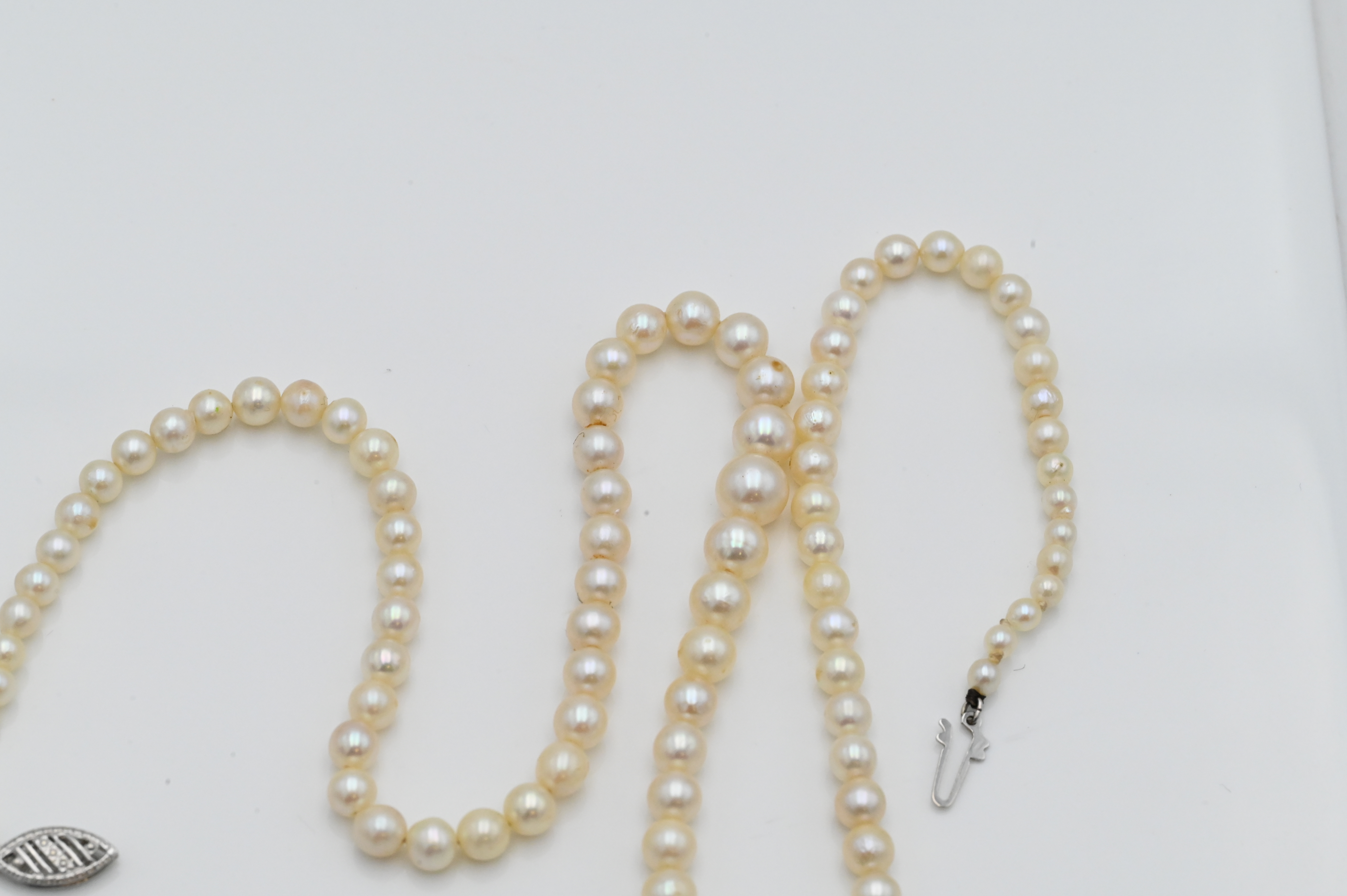 String of Graduated Pearls, having 14 karat white gold clasp, length 17 inches.