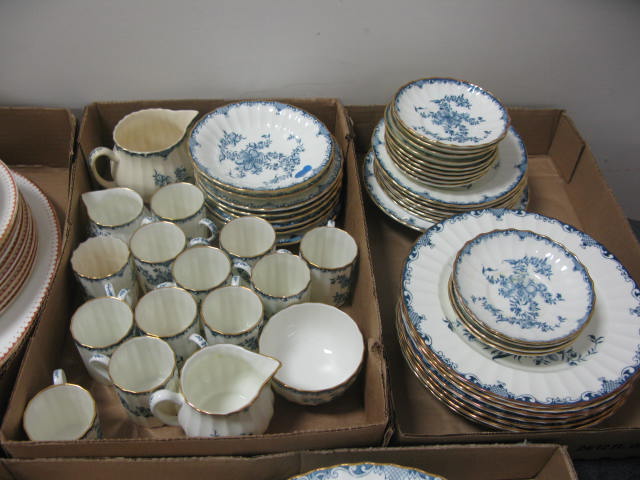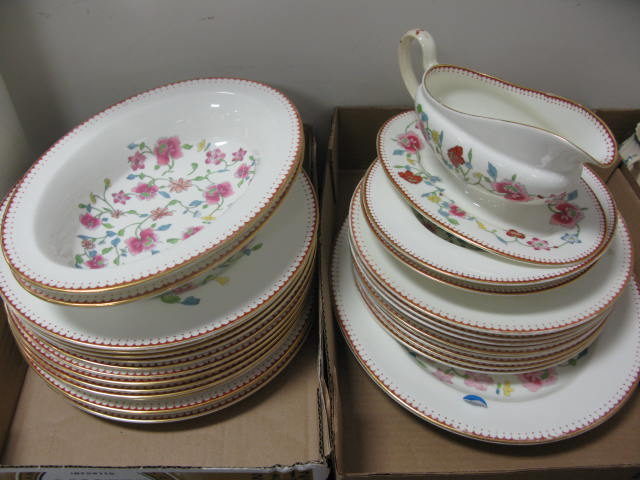 Two Royal Worcester partial sets, one is Aptly with red boarder, other is Mansfield with blue border