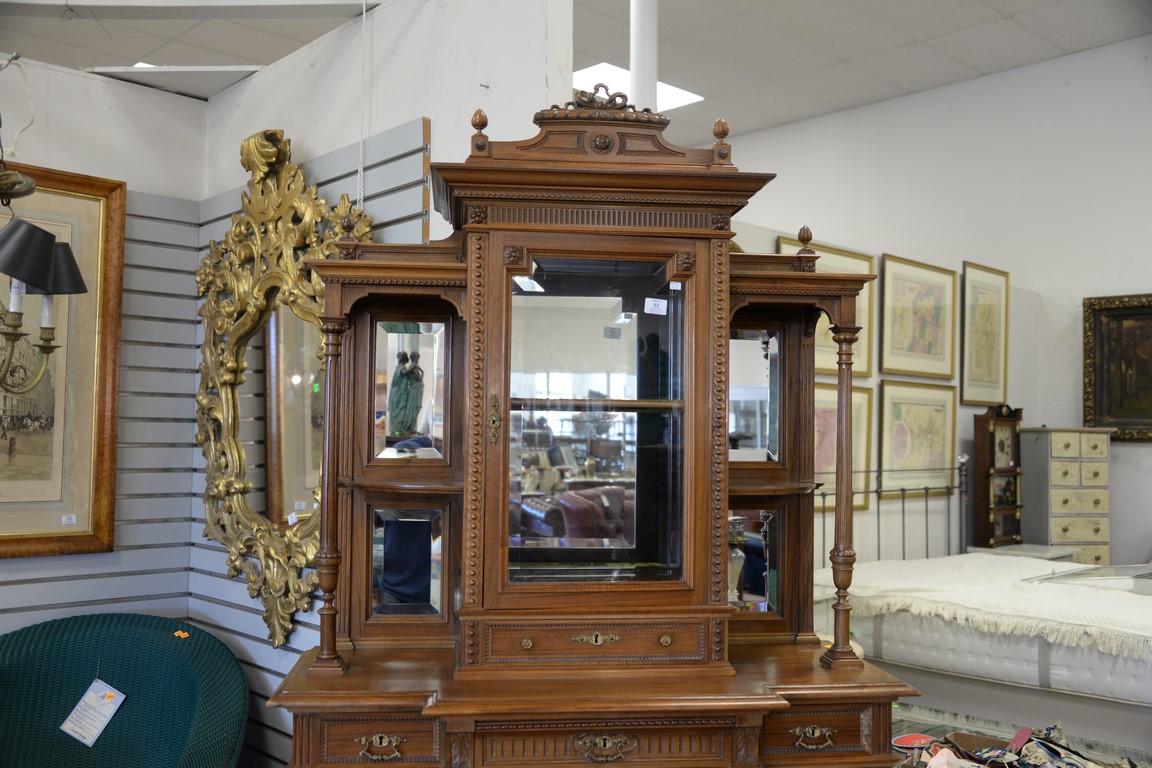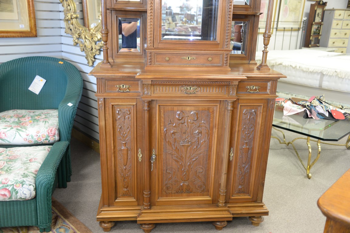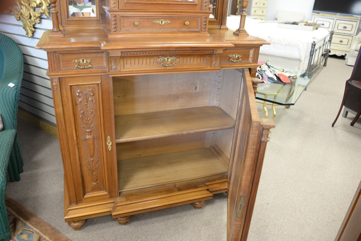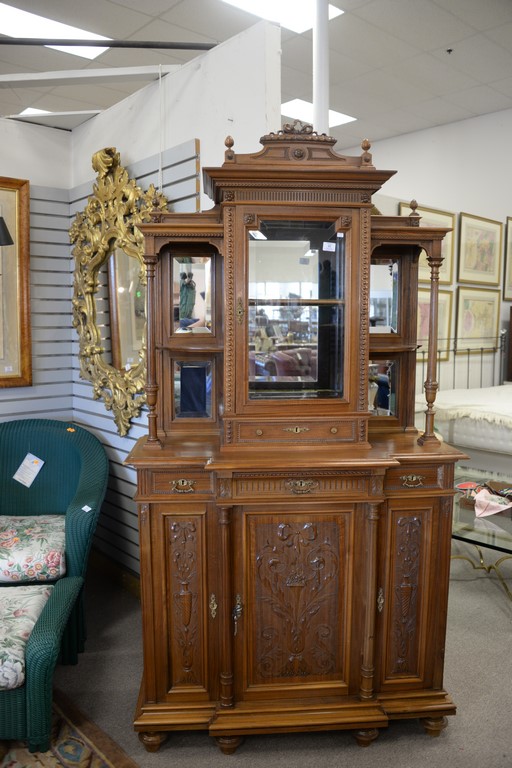 Walnut cabinet with curio top. wd. 41in., dp. 15in.