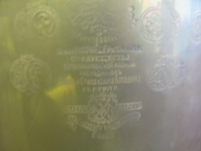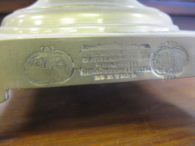 Russian brass samovar with several impressed medallion marks.