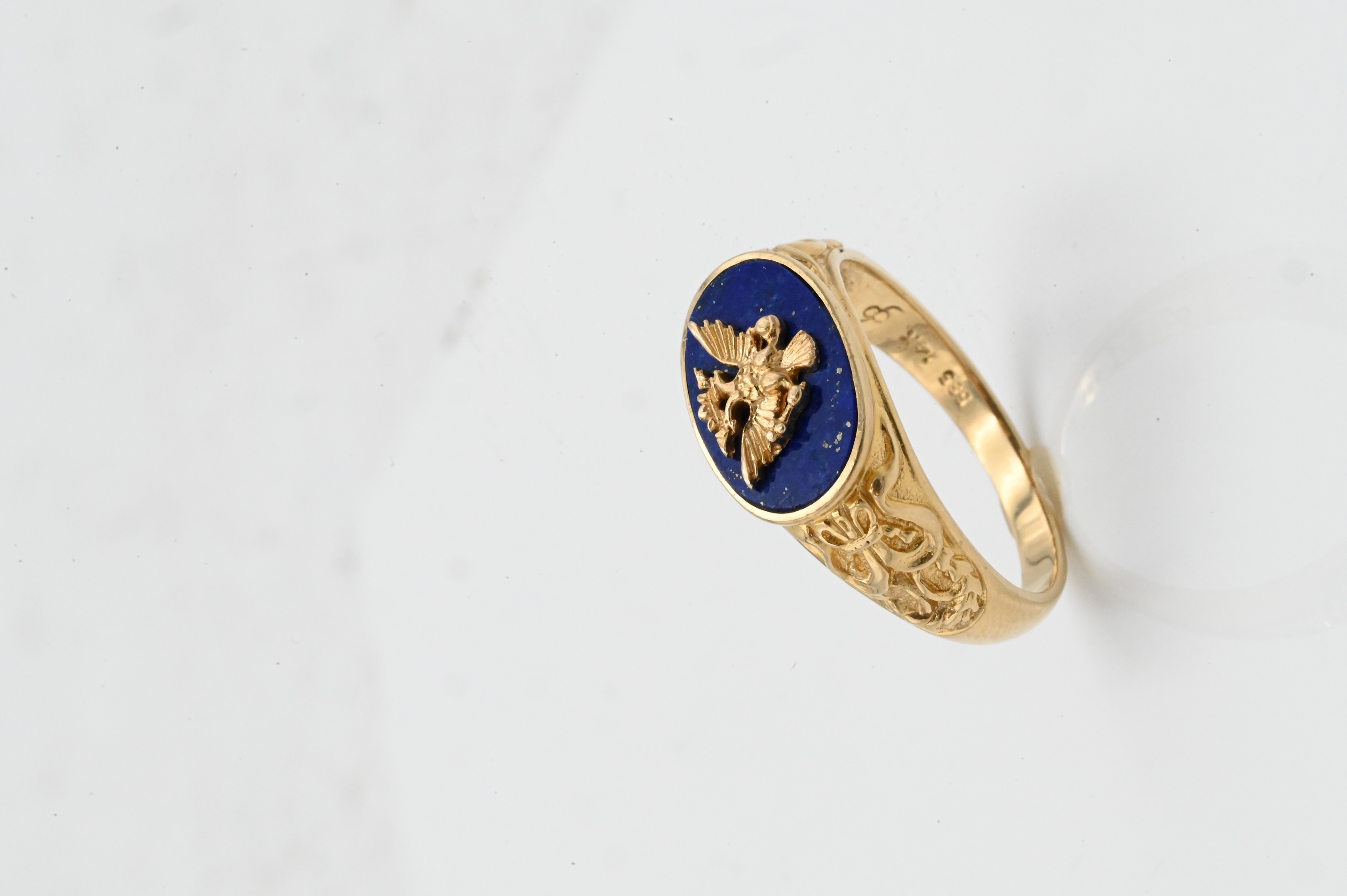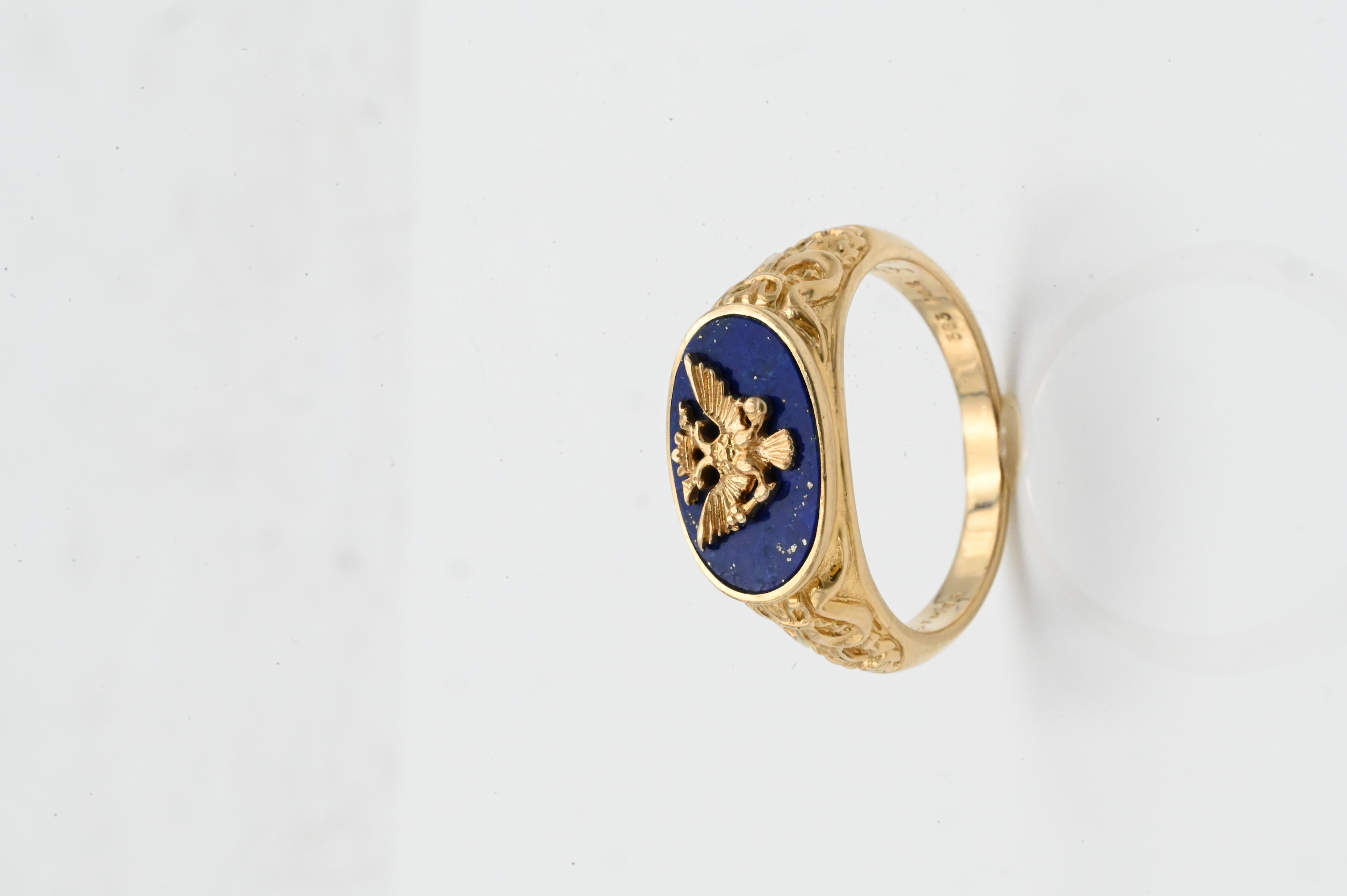 14K Yellow Gold and Lapis Ring with Imperial Russian Eagle