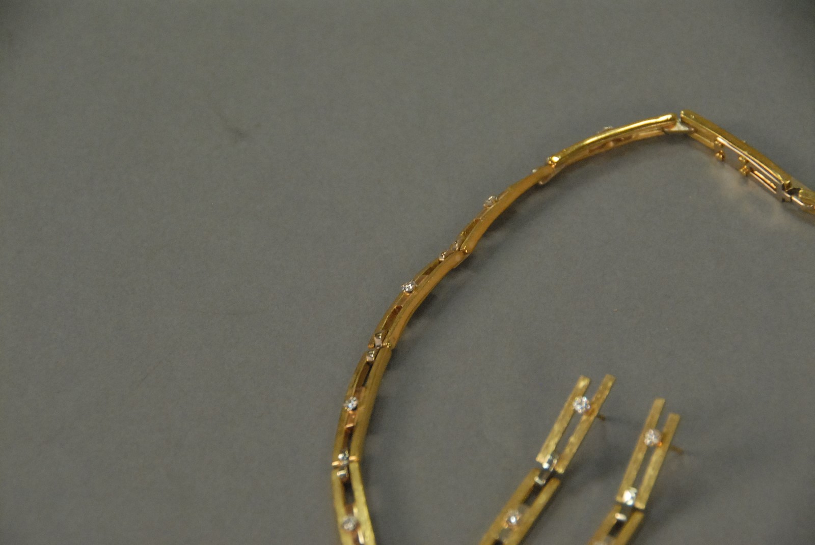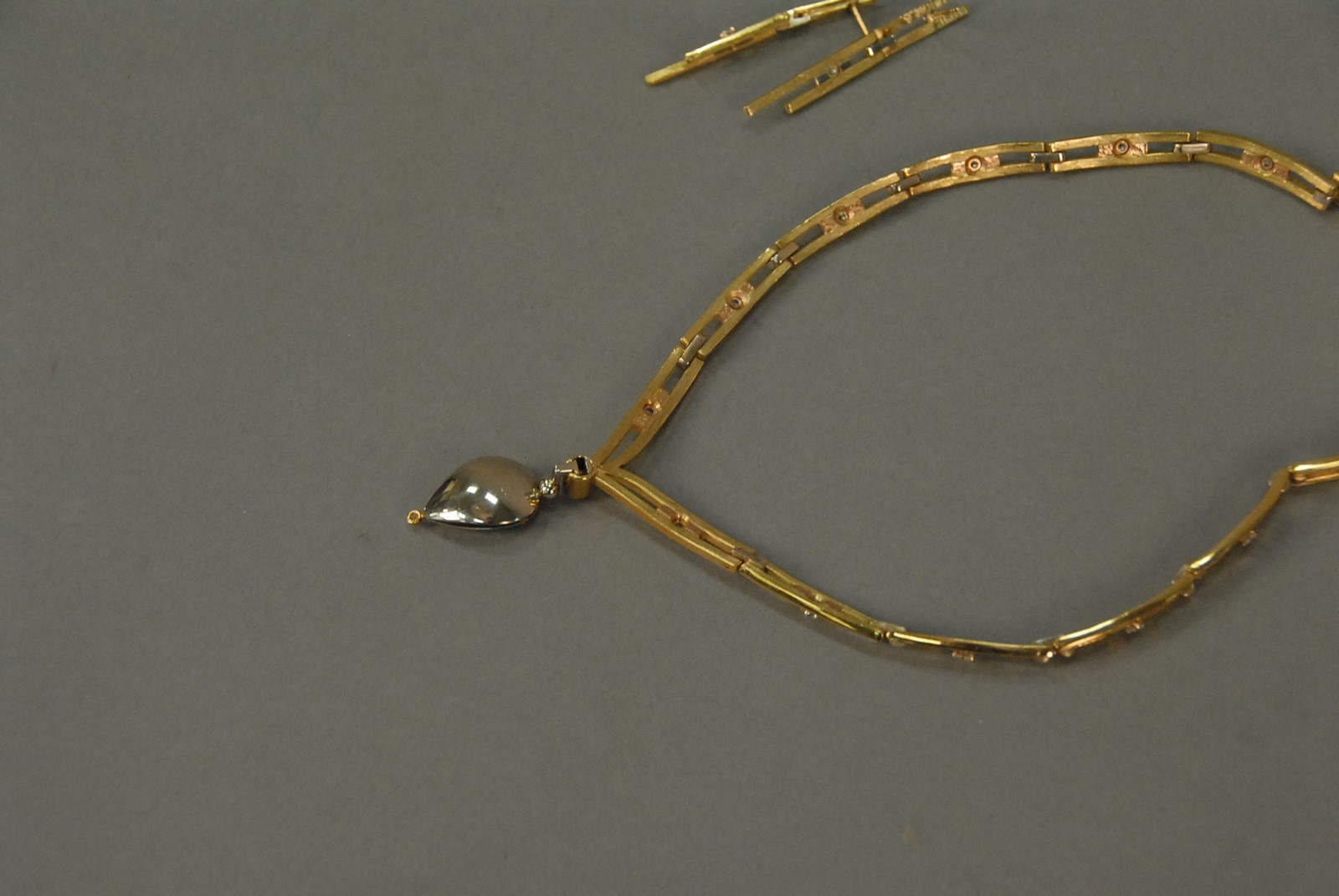 Lot 93: Alberto Becker 18K gold convertible collier and matching earrings, collier with one diamond .46 cts plus fourteen small diamonds having removable 7.38 ct tourmaline earrings having two diamonds each with all original paperwork and key to remove tourm