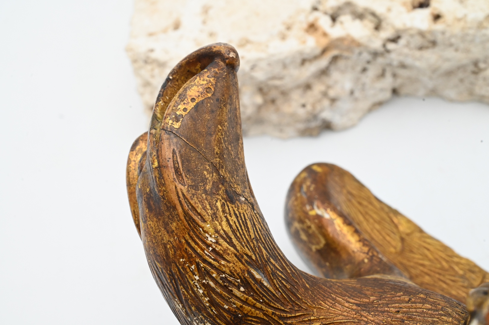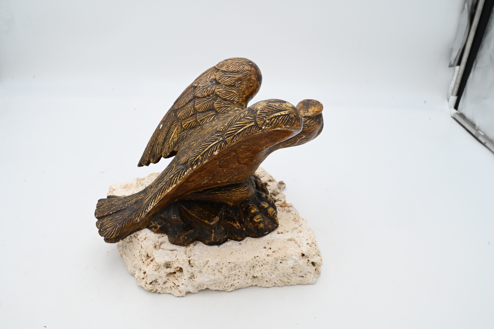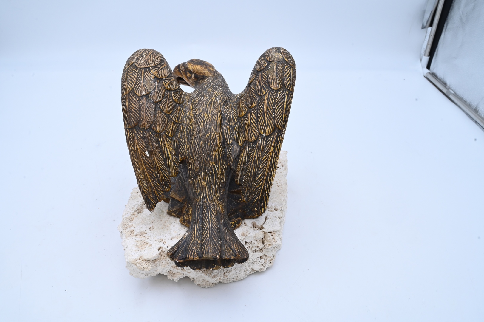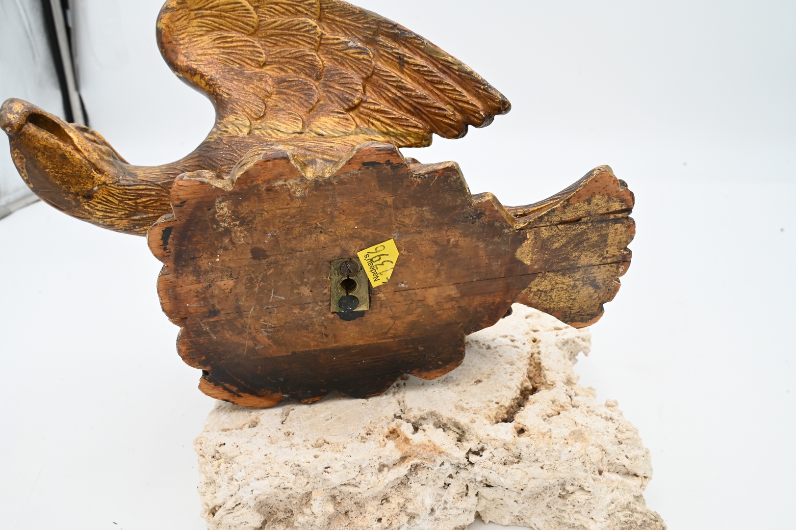 Carved Wood and Gilt Eagle, on limestone base, 19th century, height 12 inches, length 7 inches.