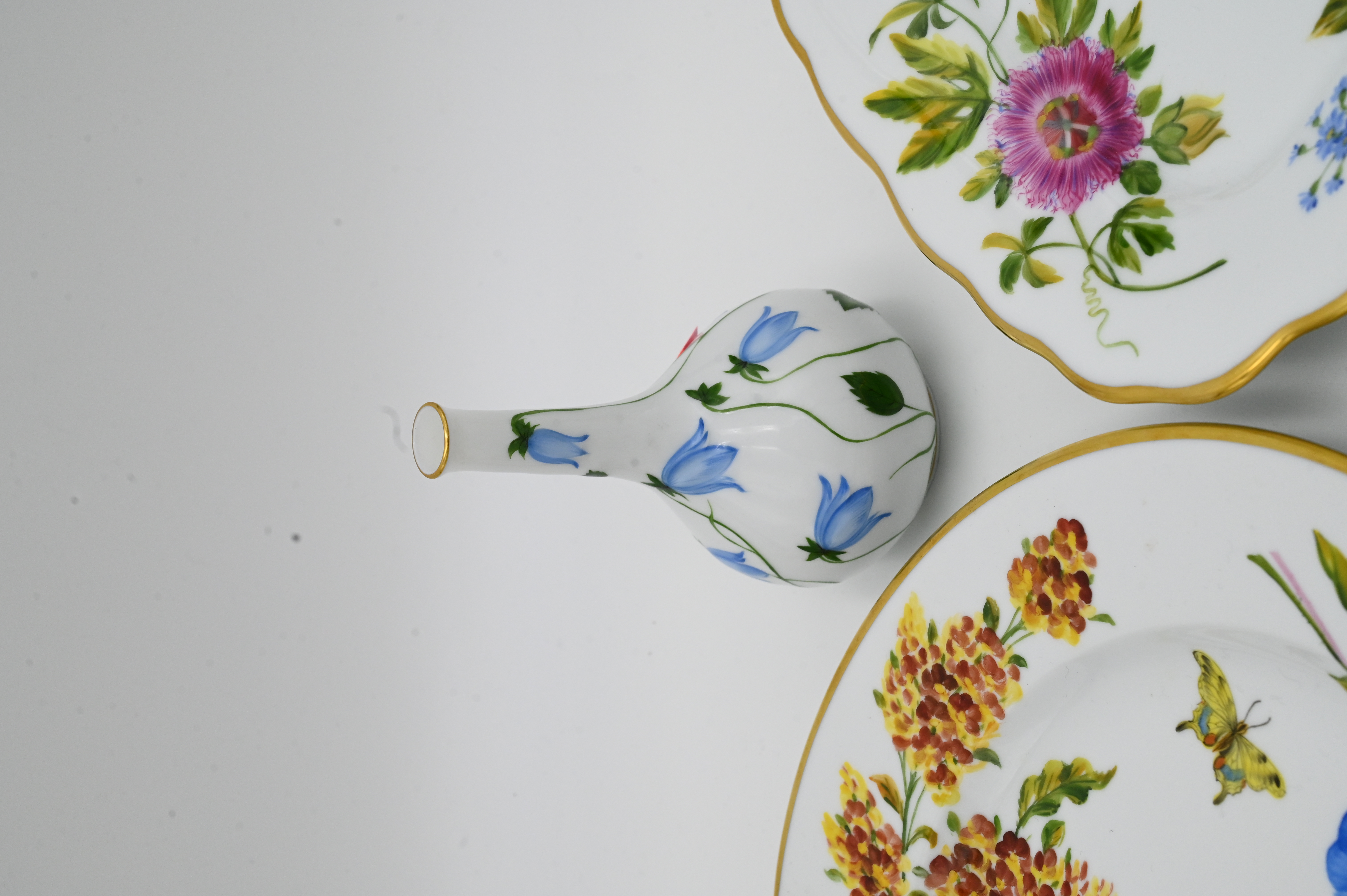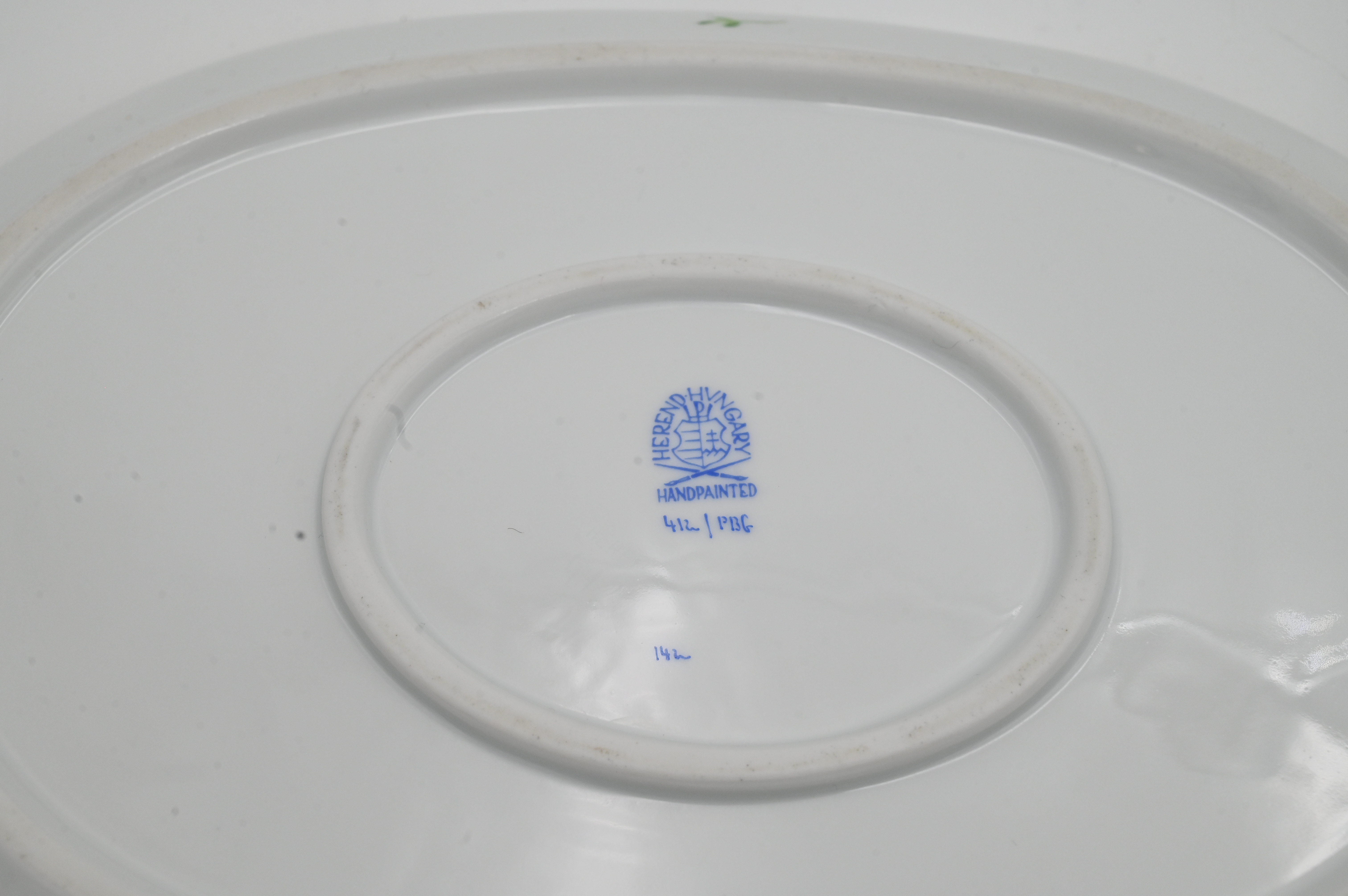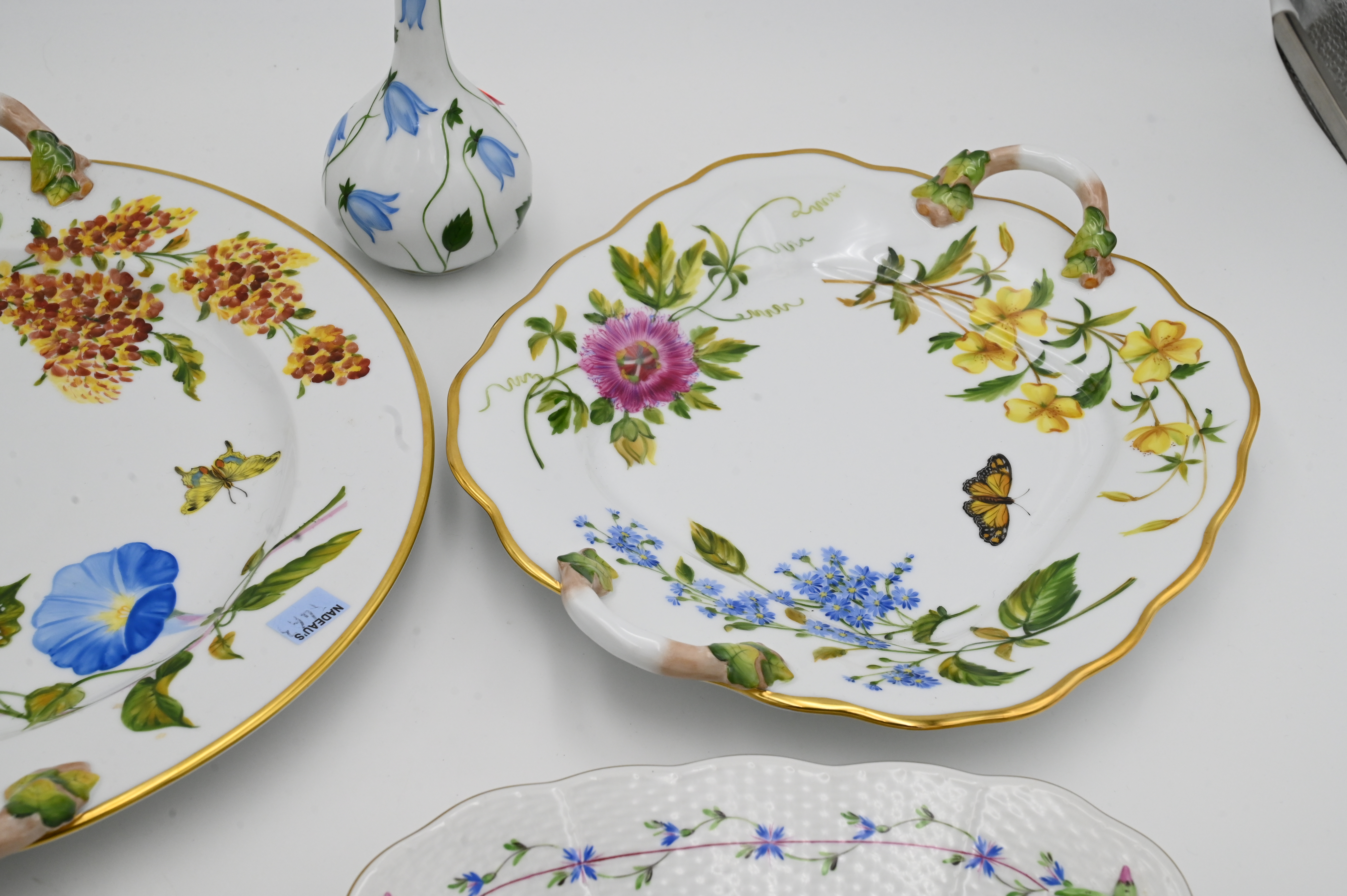 Five Herend Platters with Handles, along with a bottle vase, longest 13 1/2 inches.