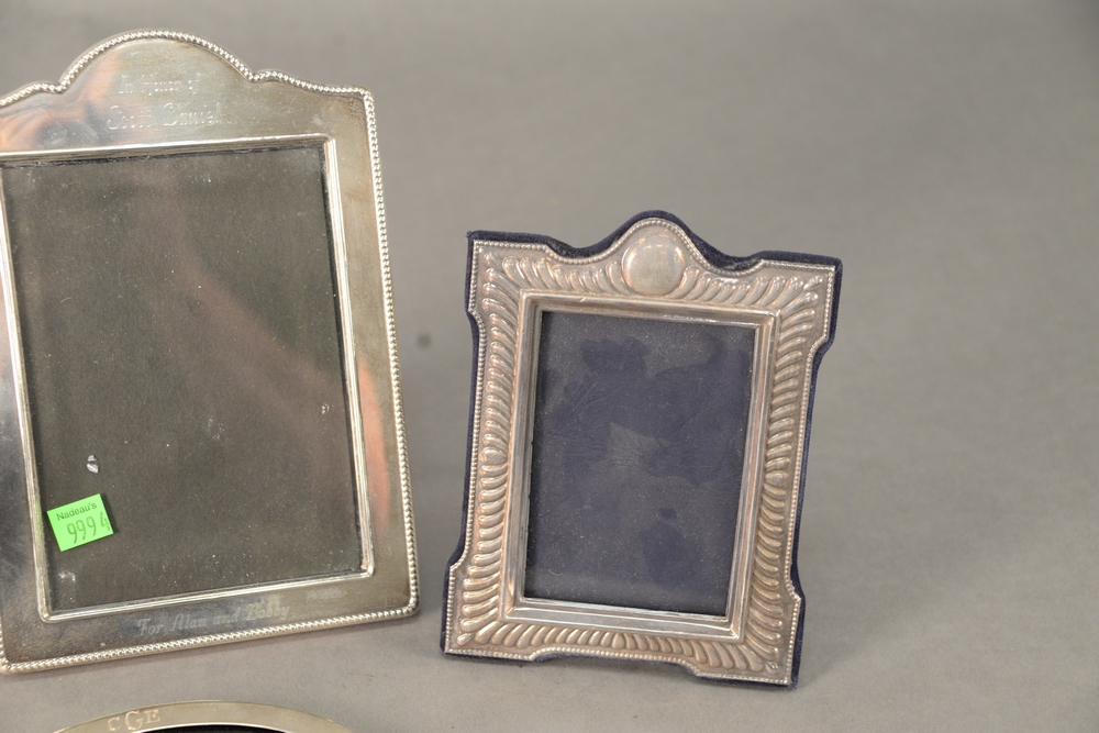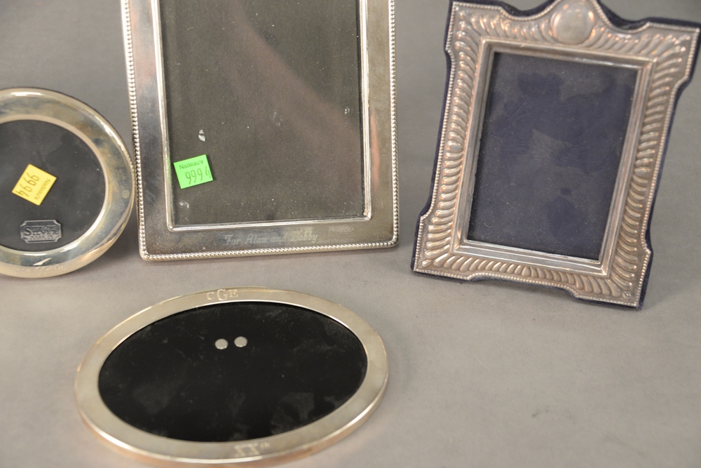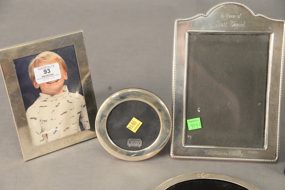 Five Sterling Silver Frames, to include two Tiffany & Company, largest 9 1/2″ x 6 1/2″.