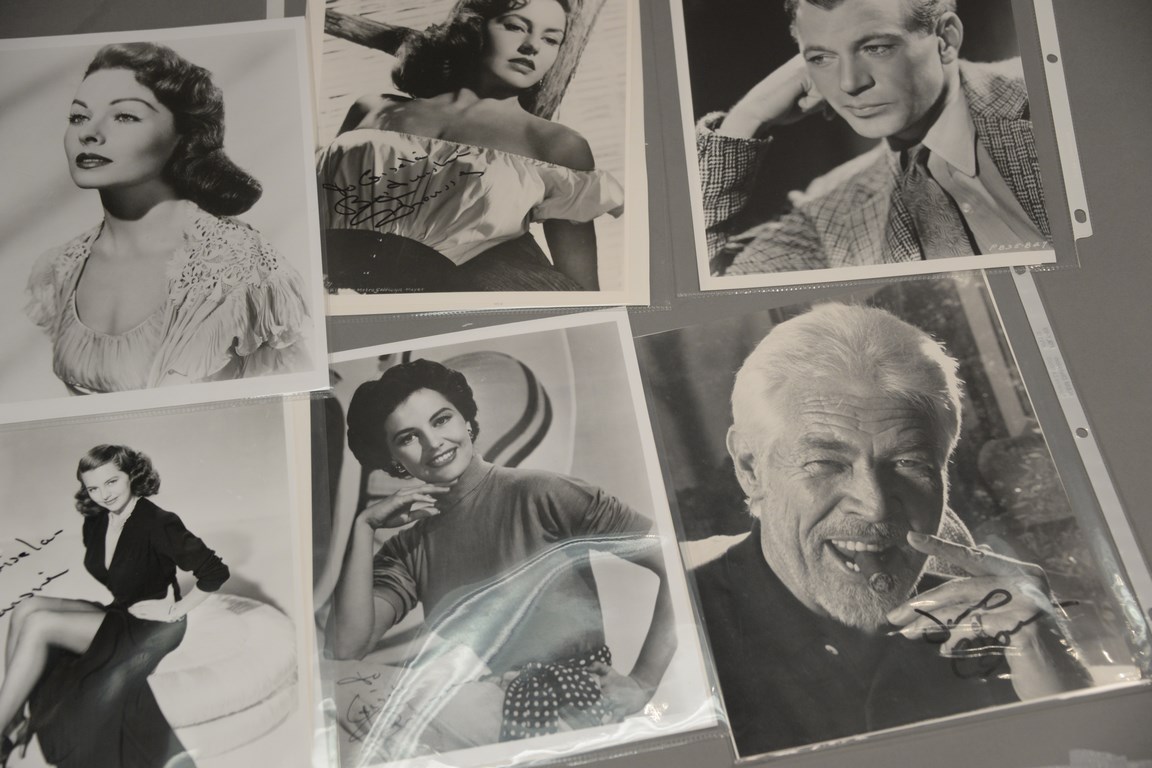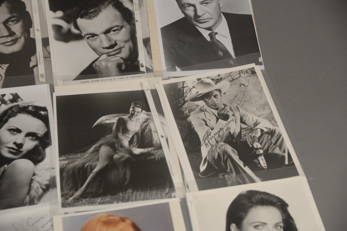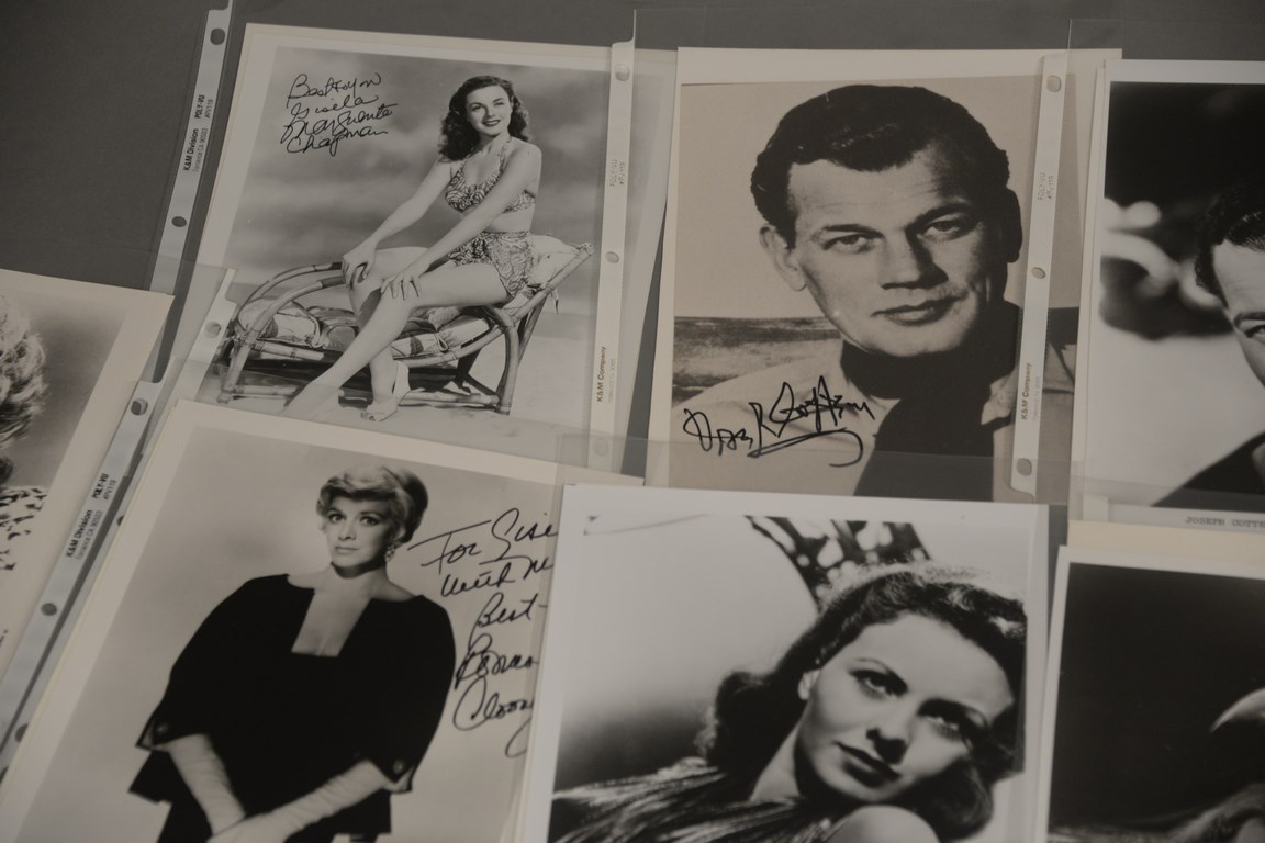 Group of 24 photographs, 16 are autograph photographs including 7 Cyd Charisse, 1 James Caan, 1 Bill Cosby, 2 Marguerite Chapman, 1 Joseph Cotton , 1 Corinne Calvet, 1 Gary Cooper, 1 Lynda Carter, and 1 James Coburn, and 8 unsigned photographs including 1 Jeff Chandler, 2 Joseph Cotton, 3 Gary Cooper, 2 Jeanne Crain.