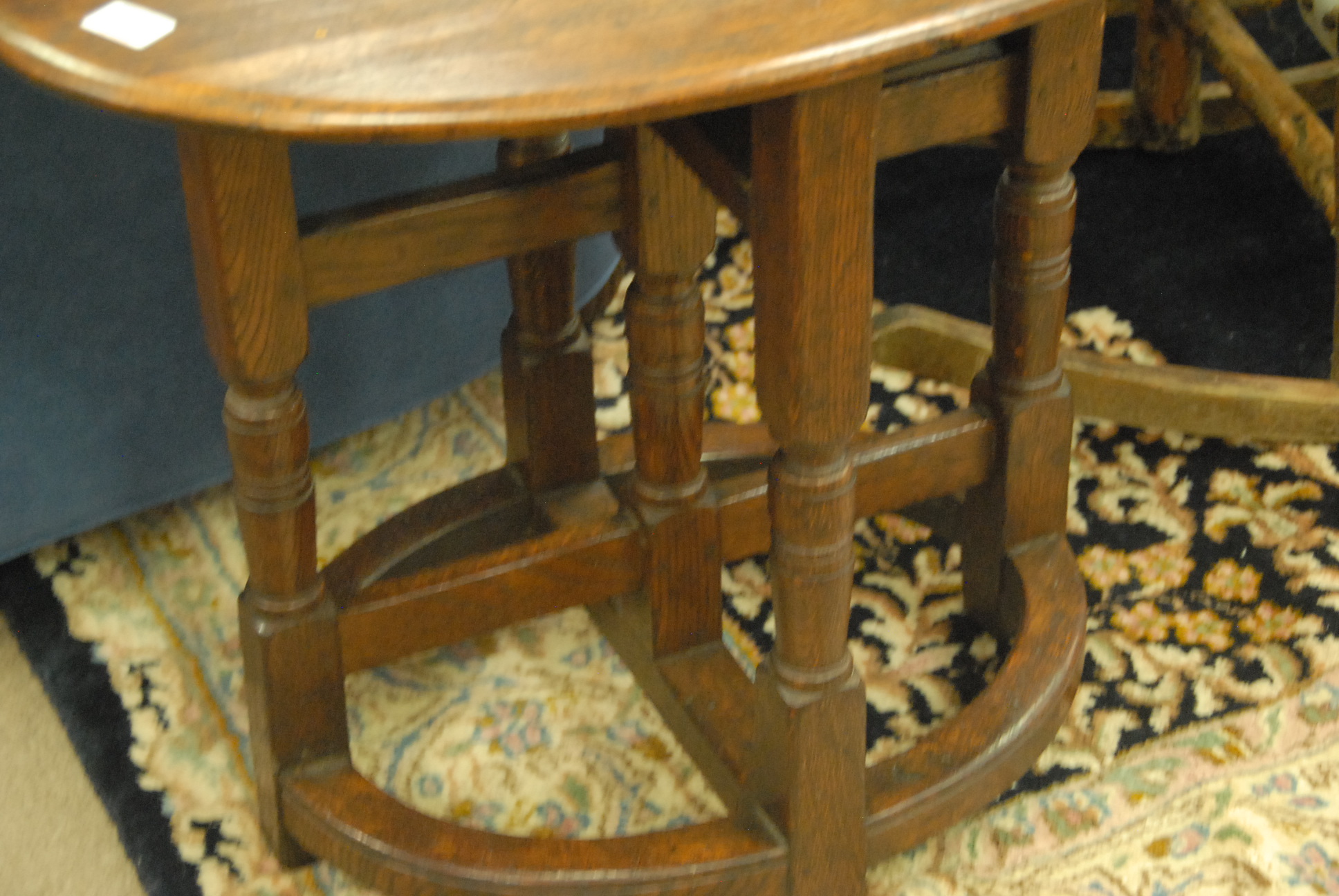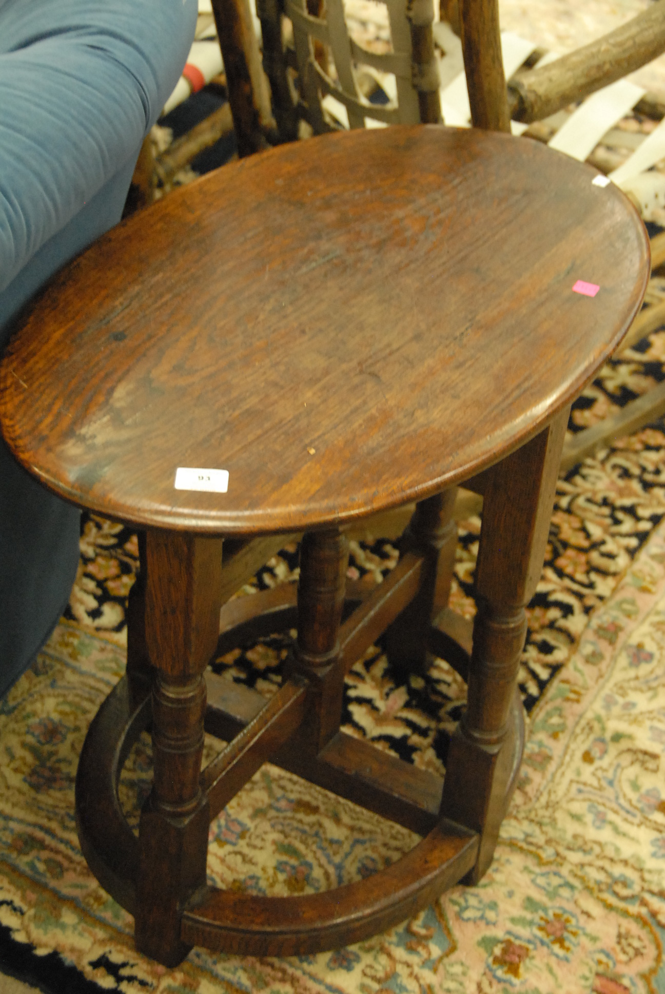 Oak arts & crafts William & Mary style oval top table.ht. 24 in. top: 18 x 29