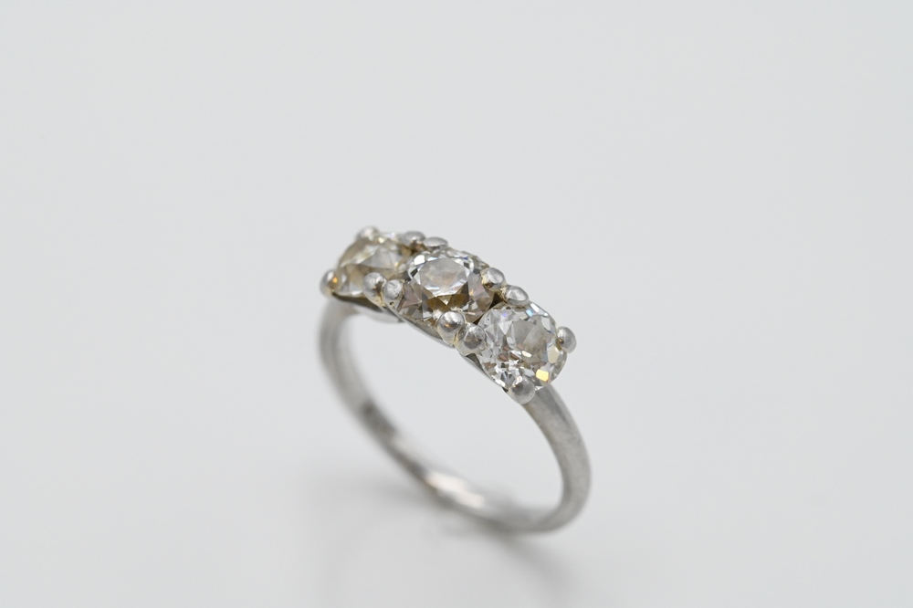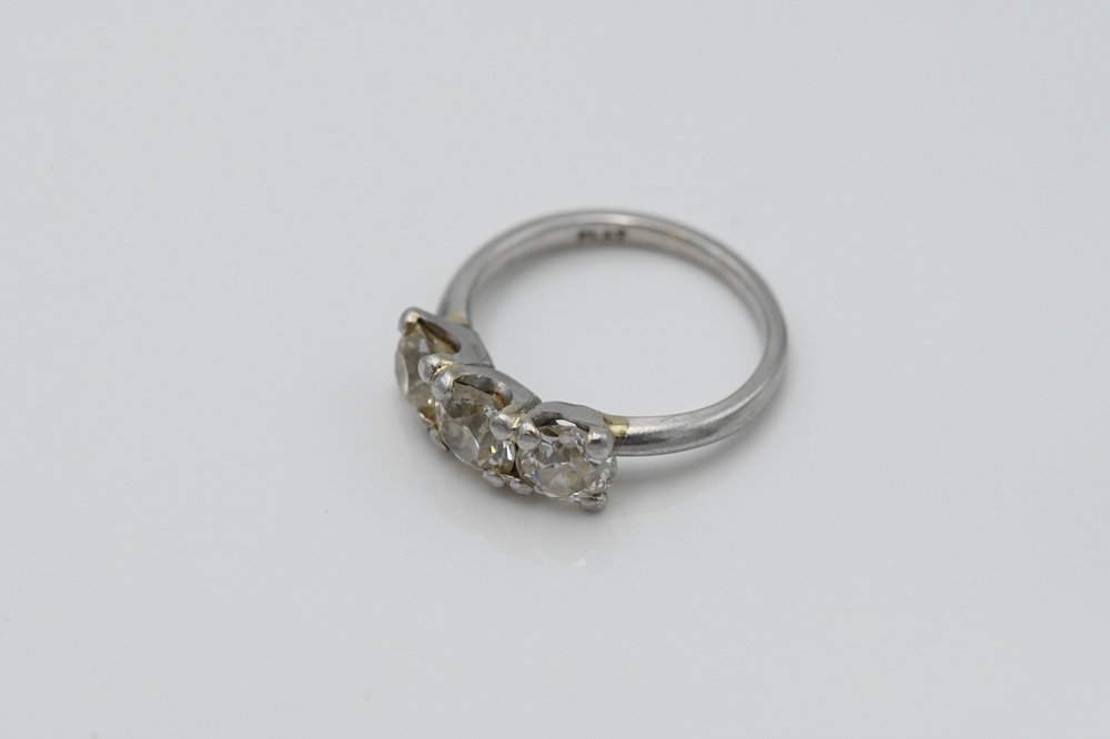Lot 93: Platinum Ring, set with three diamonds across, each approximately .85 carats each, size 6.