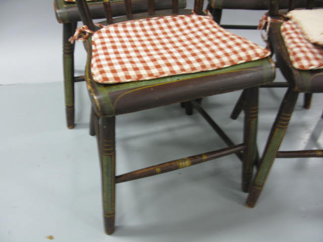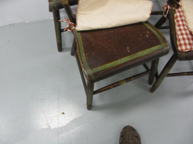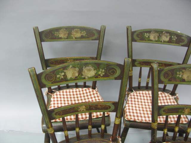 Set of four primitive plank seat chairs with original paint decoration and flowers