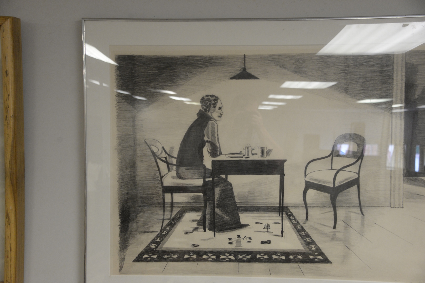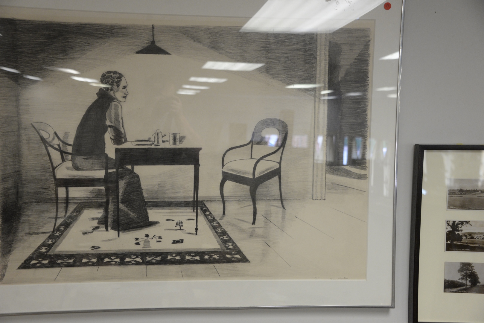 Three framed pieces to include Six Views of Scotland: Pitlochry, Dumfries, Banchory, Kirkcudbright, Falkirk, gelatin silver, framed together, early 20th century, overall 20″ x 19″; Lorenzo Homar (Puerto Rican, 1913 – 2004), Unicornio, lithograph on paper, signed and editioned in pencil lower center “Homer 64/65 artist proof”, 58 1/4″ x 30 3/4″; along with Thomas Mower Martin (American, 1883 – 1934), titled “B”, 1979, graphite on paper; signed and titled in pencil lower right “B.” Tom Martin”, 29 1/2″ x 41 1/2″.