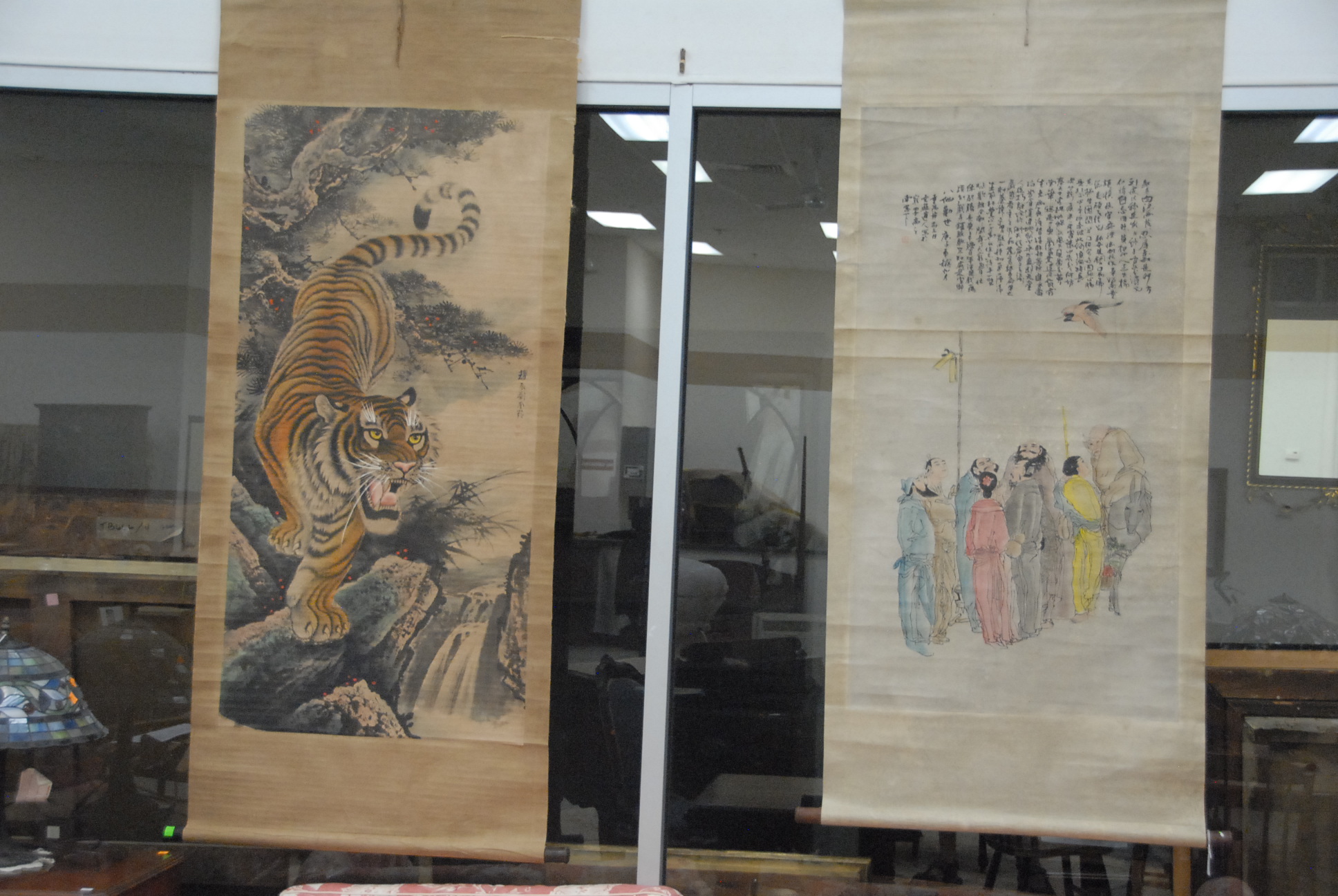 Two Chinese scroll paintings.