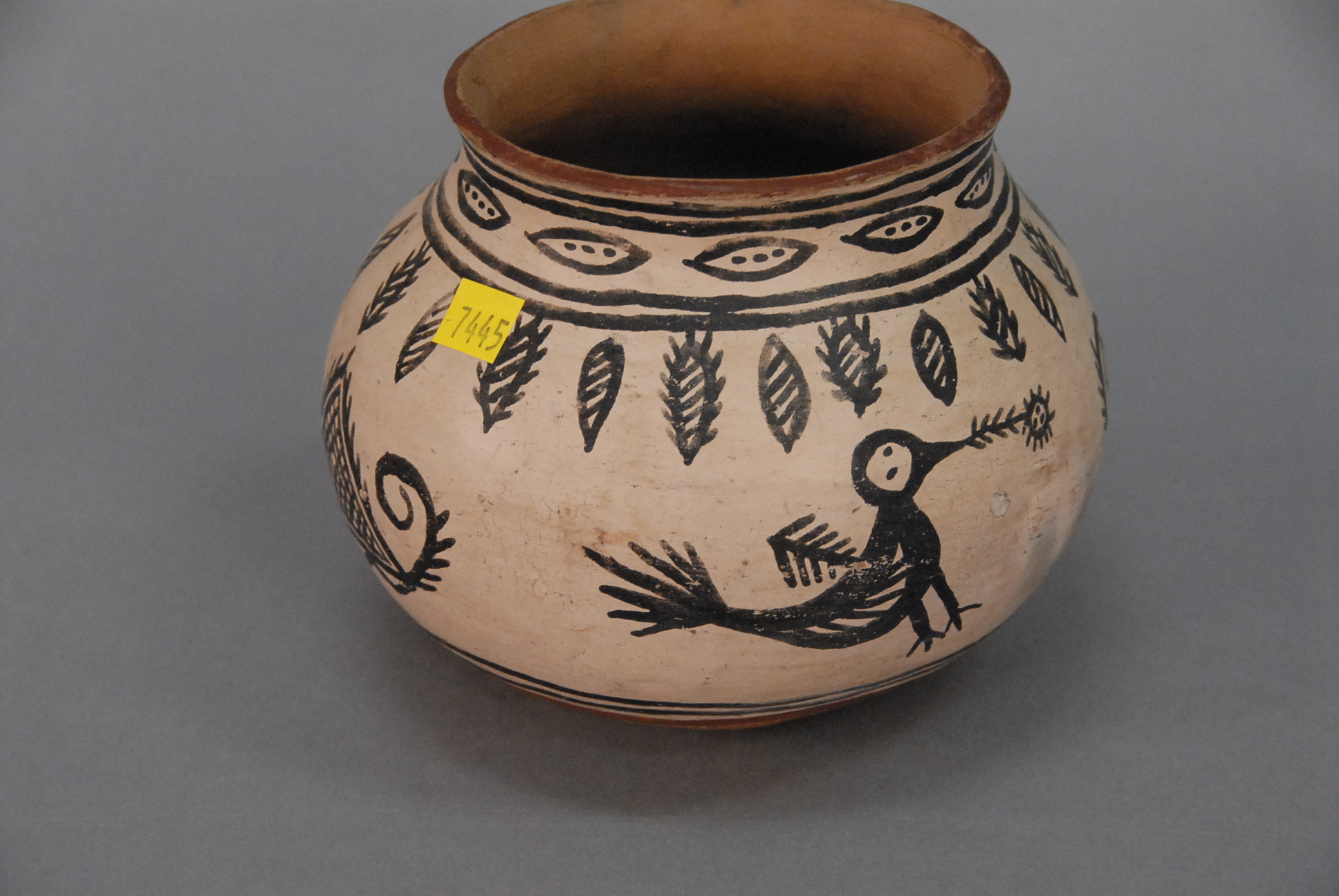 Southwest U.S. Indian pot with birds on sides. ht. 6 1/4 in.