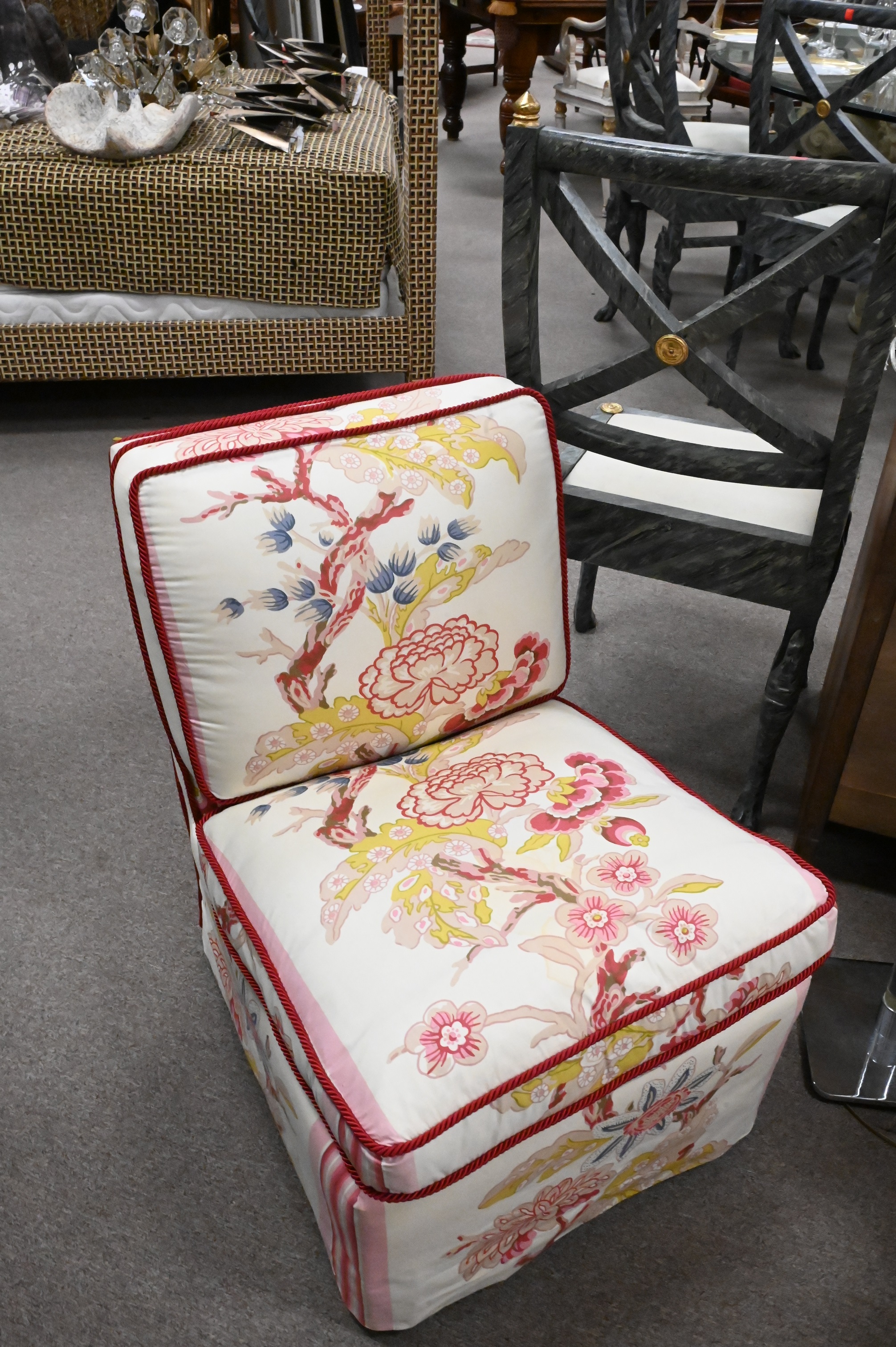 Lot 94: A Pair of Custom Chintz Upholstered Slipper Chairs