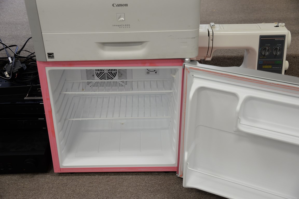 Lot 94: Audioaccess PX-600 Multi Room Pream, Cuisinart oven, Kenmore sewing machine, small pink refridgerator, and Canon ImageClass printer/…