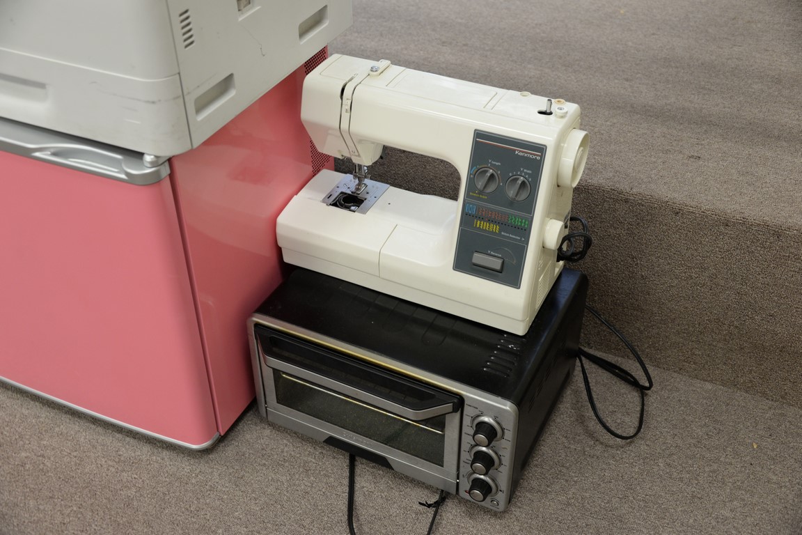 Audioaccess PX-600 Multi Room Pream, Cuisinart oven, Kenmore sewing machine, small pink refridgerator, and Canon ImageClass printer/scanner.