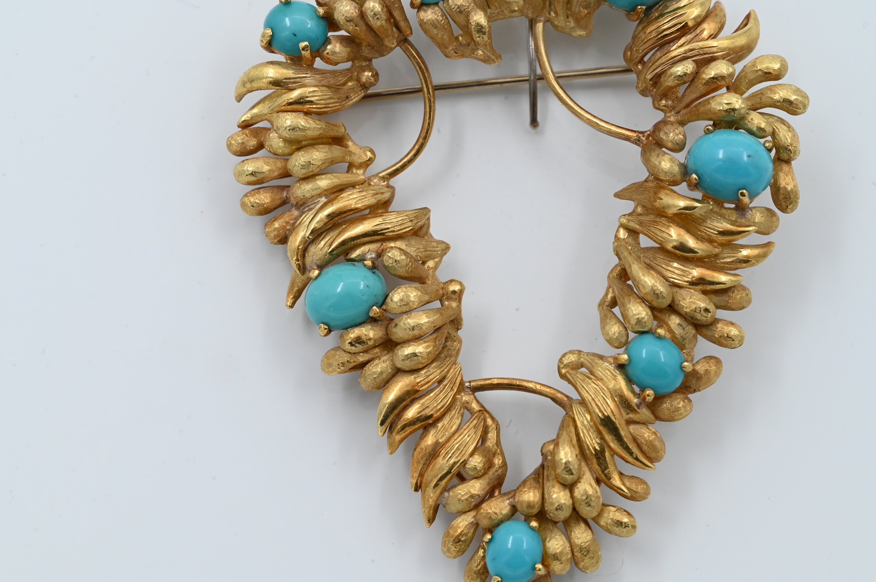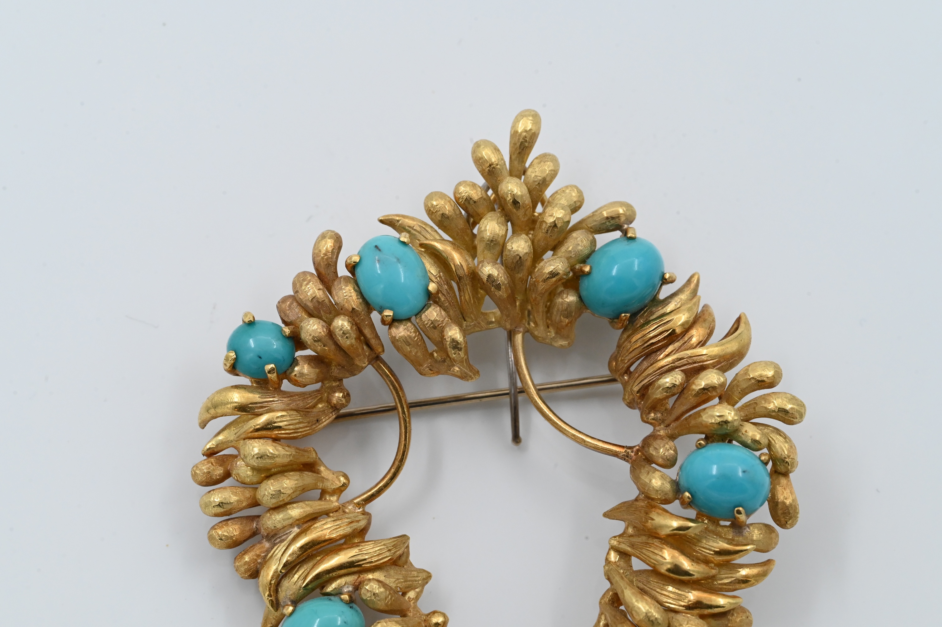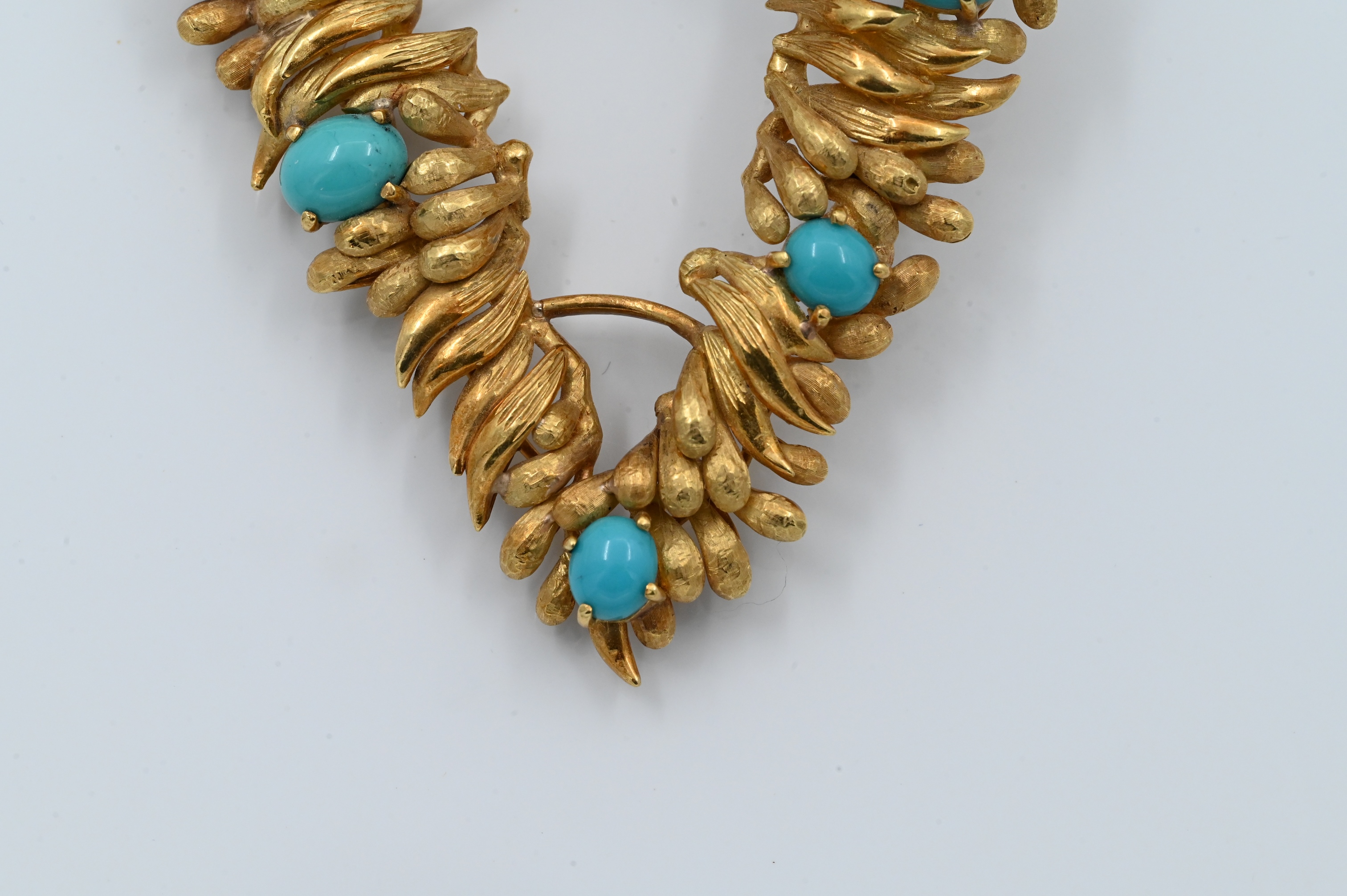 wreath leaf form having round and oval turquoises 9.5 mm x 7.5 mm to 6.5 mm x 6 mm