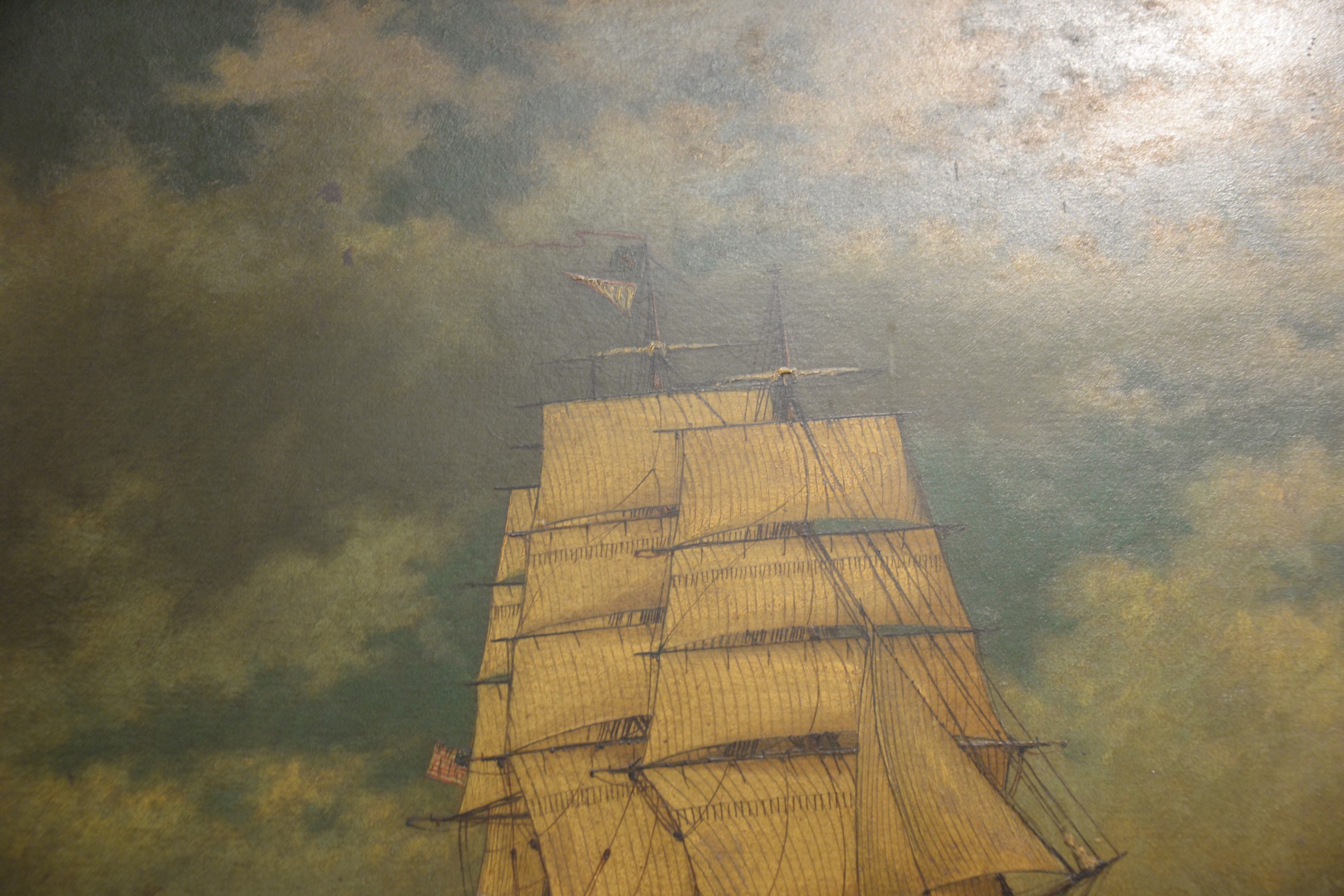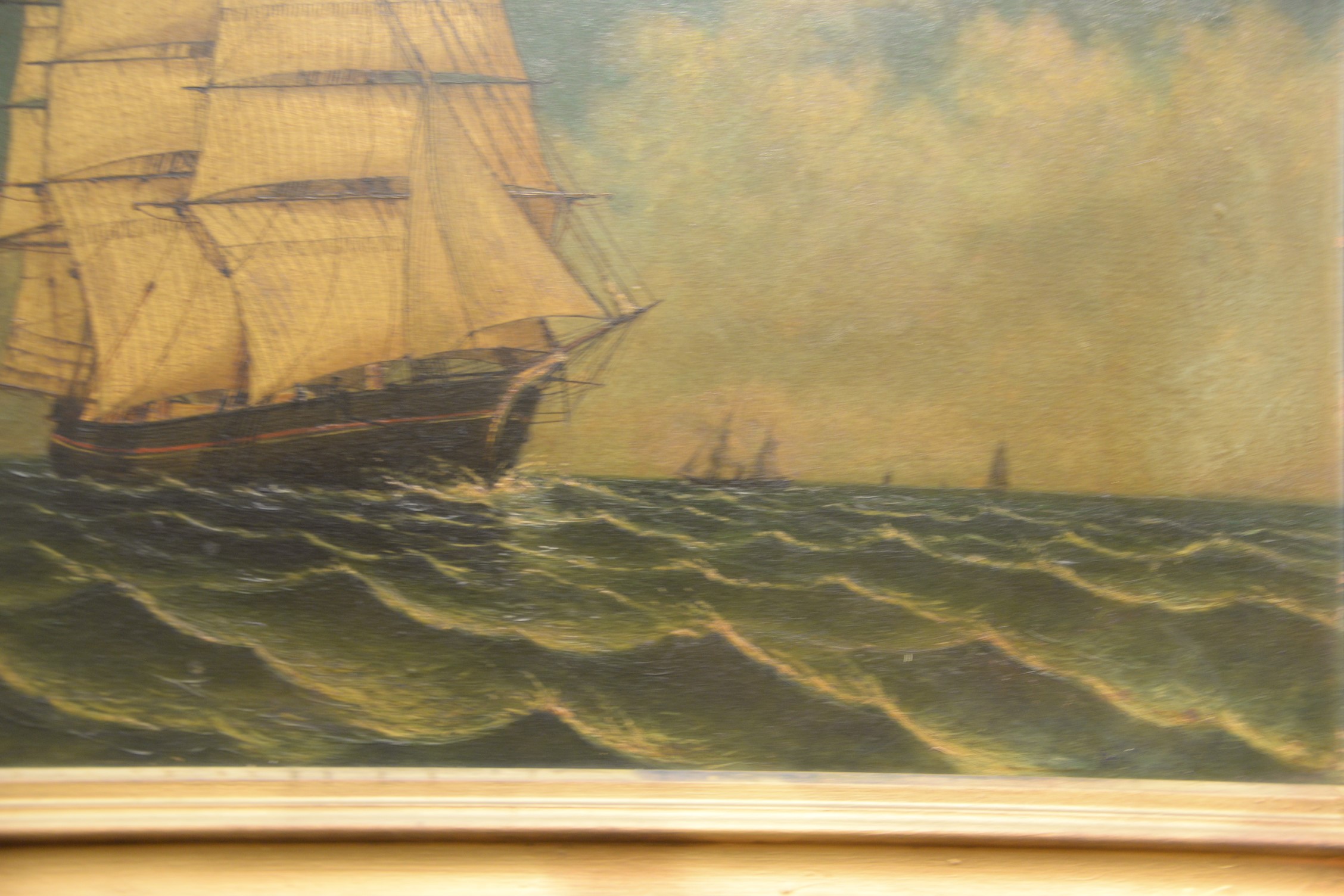 Charles Beauregard 1856-1919 American Ship Heading In oil on board signed lower left C. Beauregard 1877 remnants of a title lower right York 18 1/2 x 24 1/2