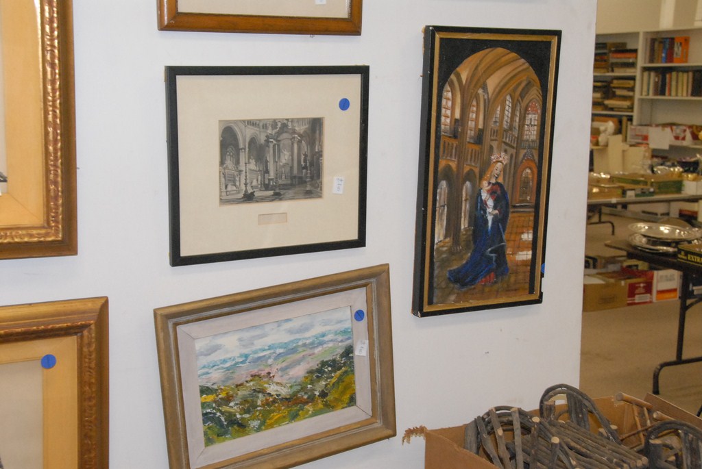 Eight piece lot of prints and paintings.