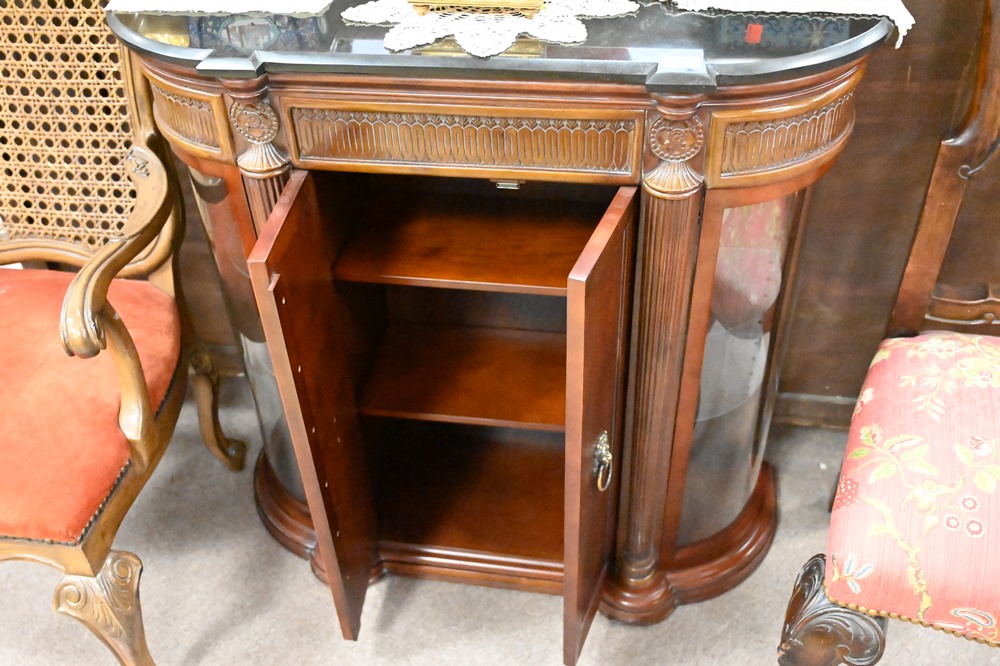 Lot 94: Empire Style Demilune Server, having granite top over four doors, height 36 inches, top 13″ x 36″.