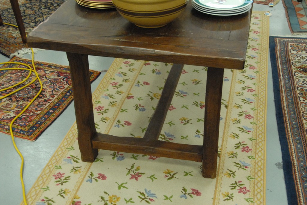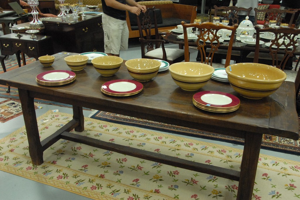 Large Continental style table with breadboard ends, ht. 29 1/2in. lg. 80in. wd. 33in. Provenance: property from a home in Rockville Center, New York which was decorated by Iris Apfel.